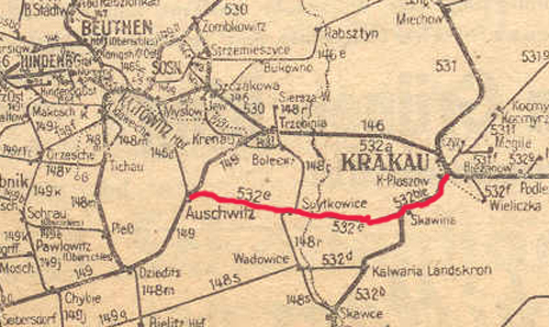 Kraków Płaszów (Krakau Plaszow) 0,0 - Skawina 15,473 - Spytkowice (Spytkowitz) 42,085 - Oświęcim (Auschwitz) 64,18
