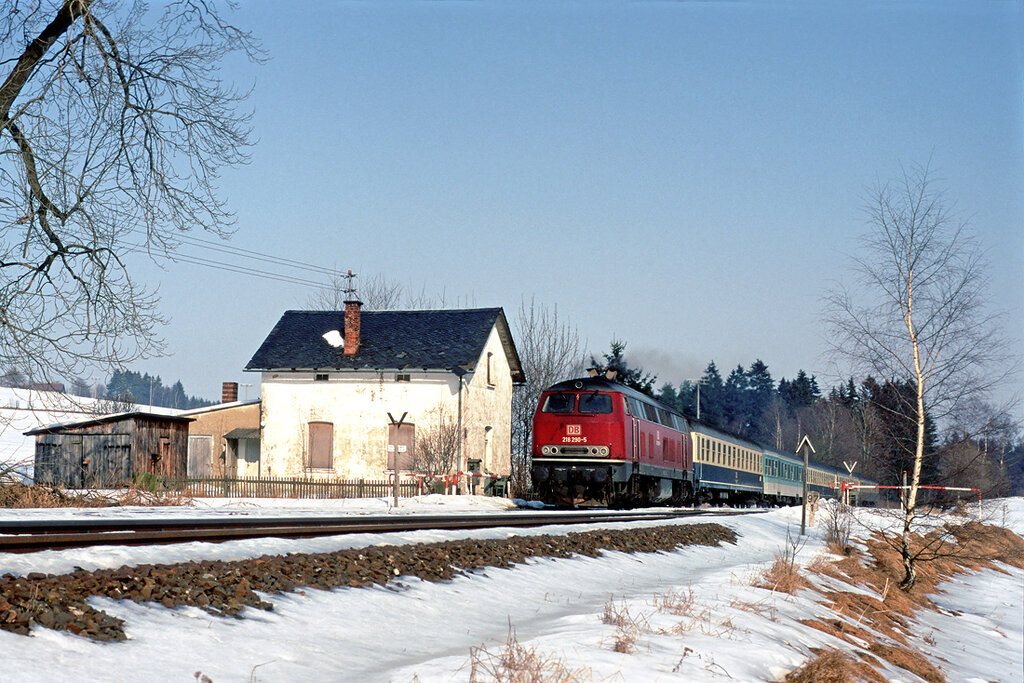 Hof Hbf | 127,23 | km 164,75 der Strecke Leipzig Bayerischer Bf 0,12 - Altenburg Hbf 38,63 - Werdau 73,81 - Reichenbach (Vogtl) 90,96 - Plauen ob Bf 116,11 - Grenze DDR/BRD 151,699 - Hof Hbf 164,75 |