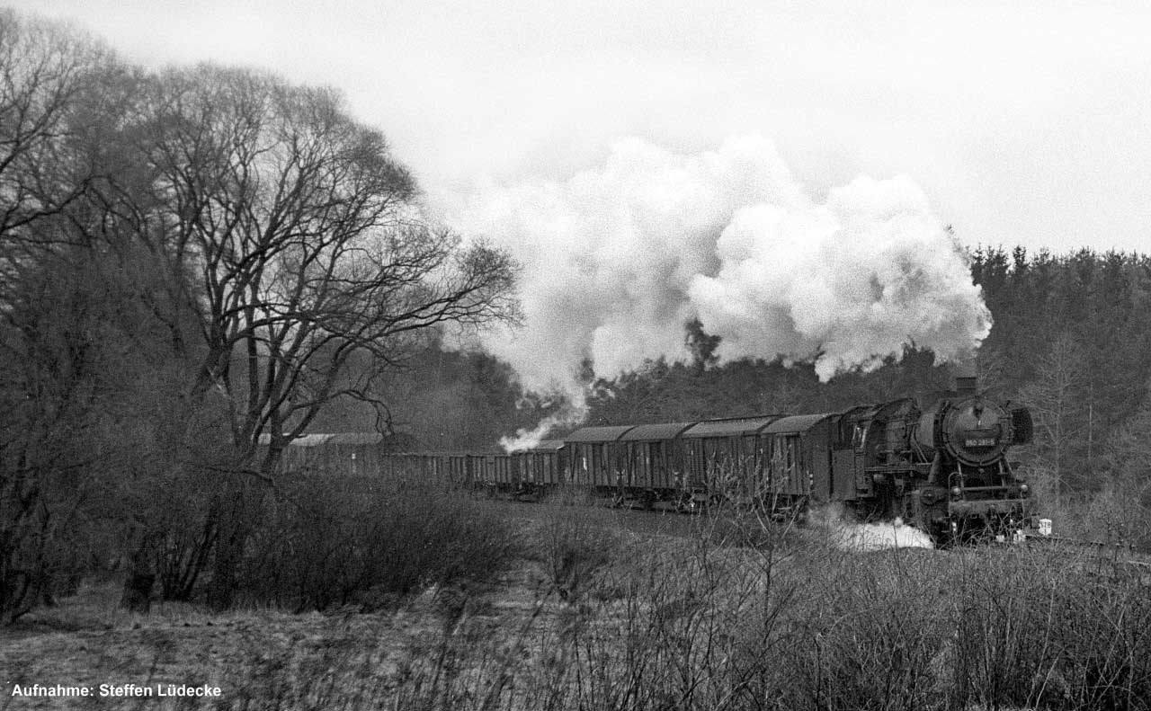 und ganz links ist im qualmigen Dunst gerade noch 052 475 vor dem N 3419 nach Selb Stadt erkennbar.