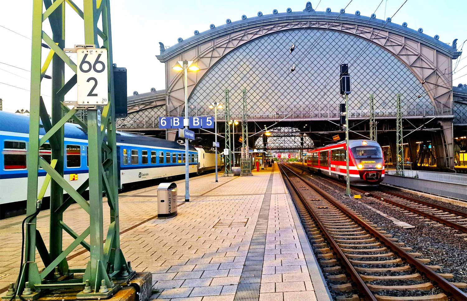 Dresden Hbf | 62,49 | km -0,048 der Strecke Dresden Hbf -0,048 - Chemnitz Hbf 79,73 - Zwickau Hbf 128,35 - Abzw. Werdau Bogendreieck (Neumarker Spitze) 136,23 |