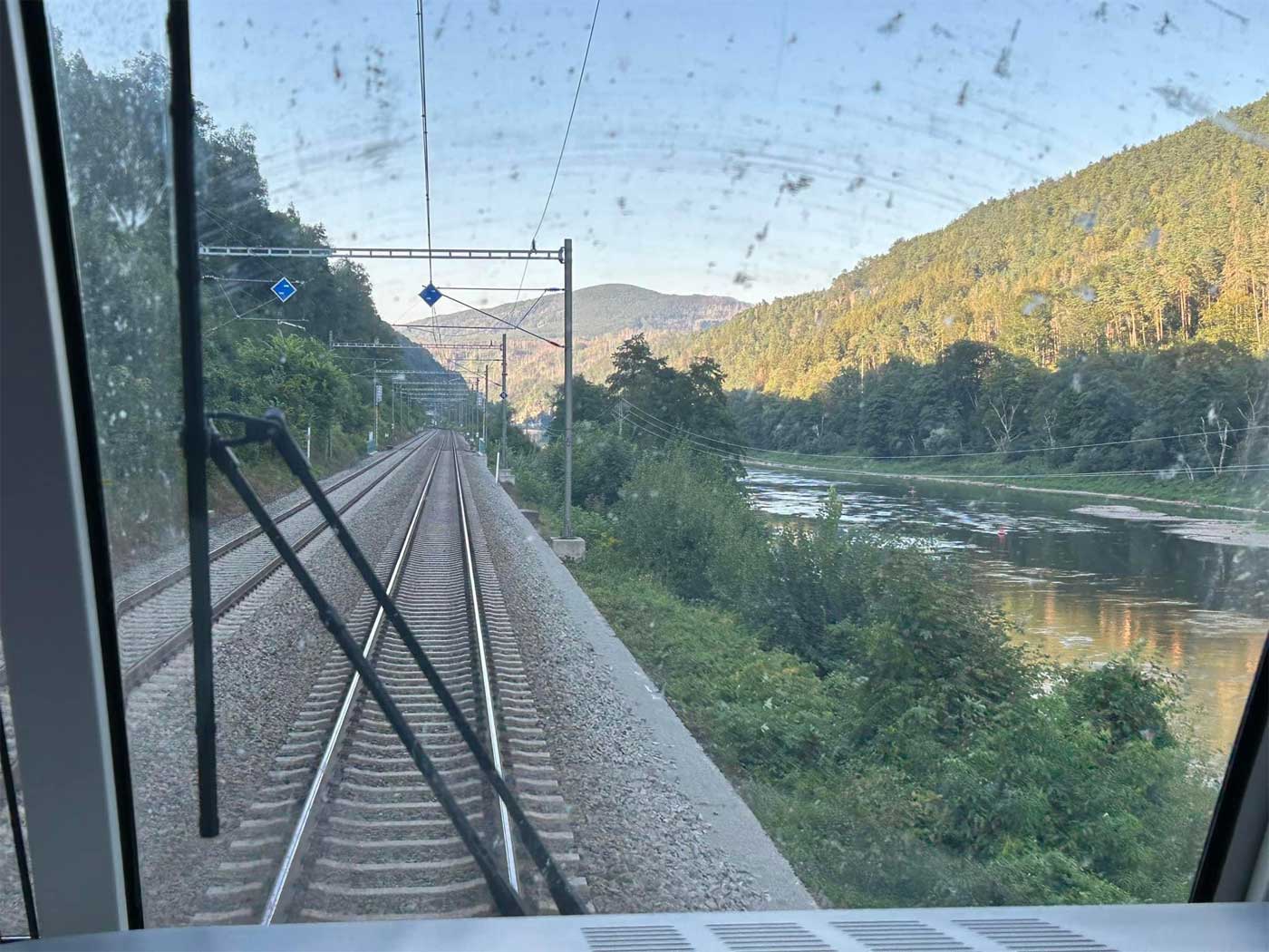 Die beiden anderen Gleise nach rechts gehören zur Strecke