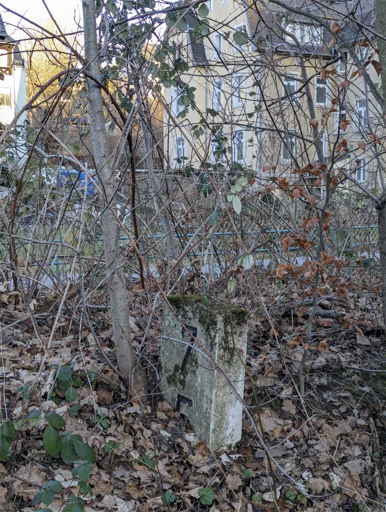 km 13,8 (Tafel und Stein) zwischen Dittersdorf (bei Chemnitz) und Kemtau - Blick Richtung Chemnitz
