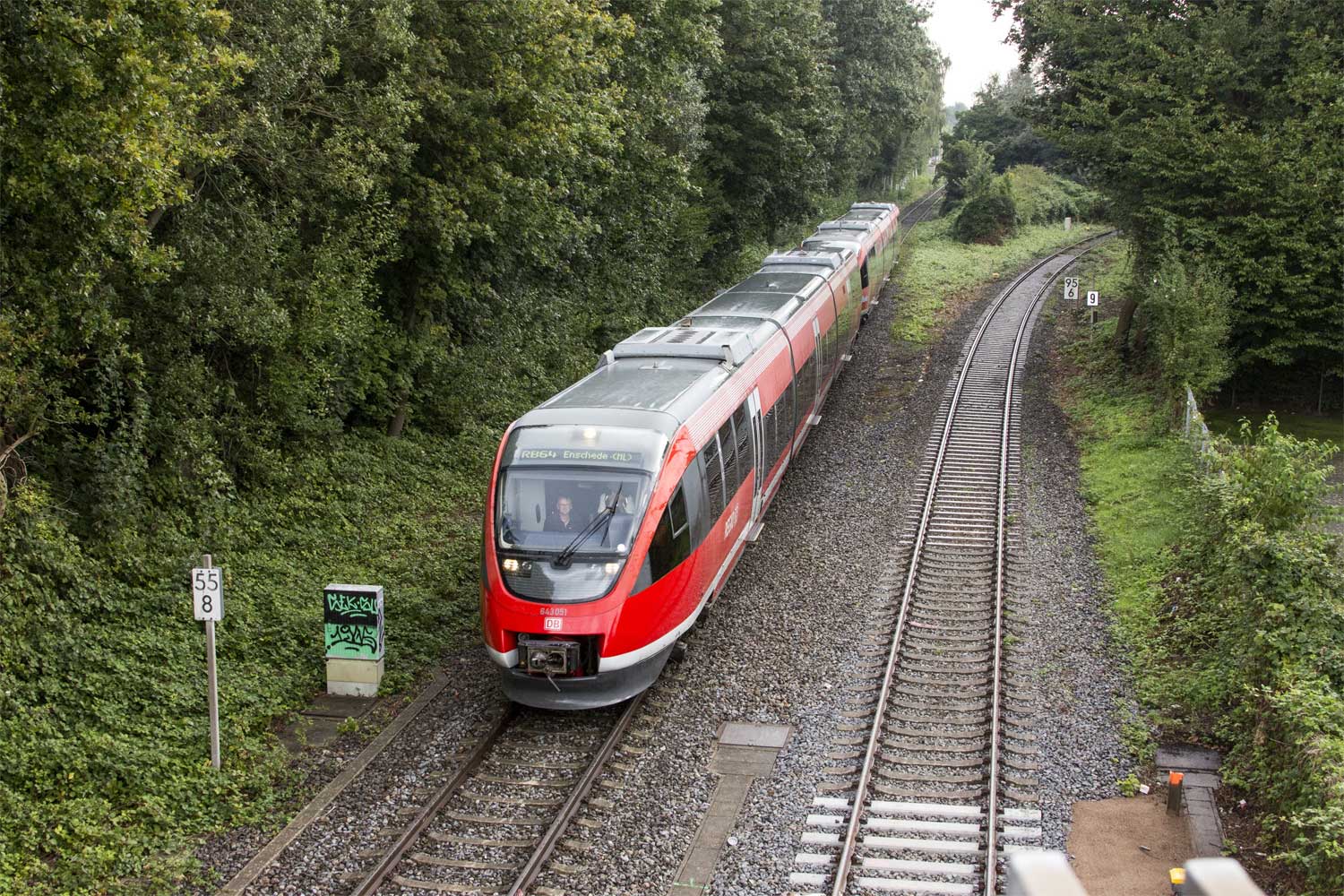 Gronau (Westf) | 95,95 | km 56,09 der Strecke Münster (Westf) Hbf 0,0 - Gronau (Westf) 56,09 - Staatsgrenze km 59,030 = (km 59,7 - Enschede 53,5 - Hengelo 45,1 - Zutphen 0,0) |
