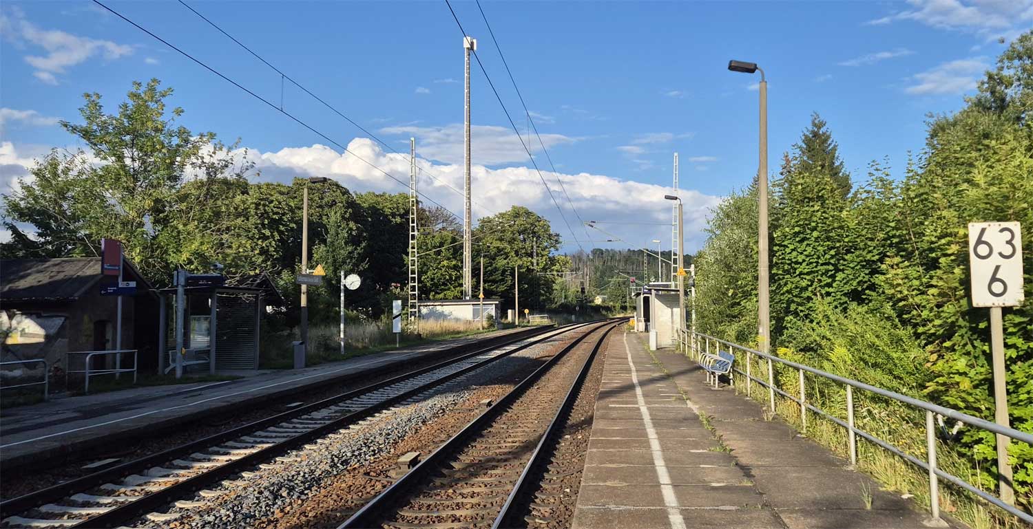 km 75,59 der Strecke Leipzig Bayerischer Bf 0,12 - Altenburg Hbf 38,63 - Werdau 73,81 - Reichenbach (Vogtl) 90,96 - Plauen ob. Bf 116,11 - Hof (Saale) 164,8 (LH) | ||