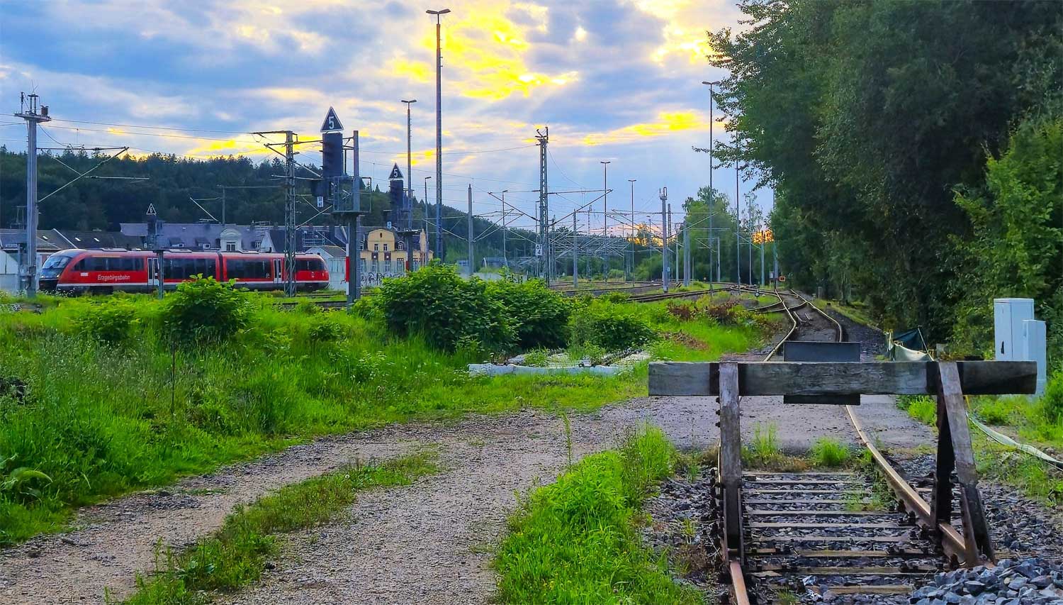 km 57,92 der Strecke Staatsgrenze Tschechei/Deutschland 0,0 - Reitzenhain 1,39 - Pockau-Lengefeld 31,23 - Flöha 57,92 (RF) | ||