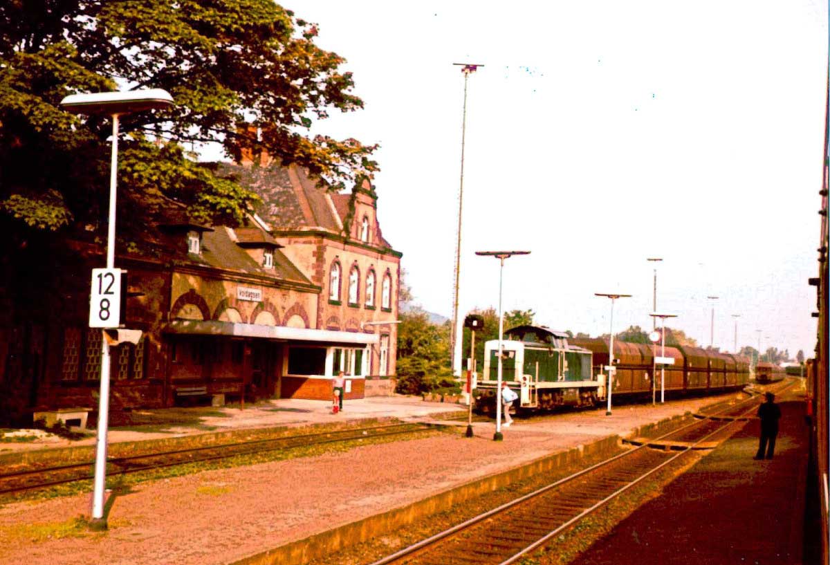 Vlotho | 69,49 | km 40,4 der Strecke Wallenbrück 0,0 - Herford Kleinbf 17,9 - Bad Salzuflen Kleinbf 24,8 - Vlotho Kleinbf 38,9 - Vlotho Reichsbf 40,4 und Zweigstrecke nach Vlotho Westhafen (Herforder Kleinbahnen GmbH) Spurweite 1000 mm, elektrisch betrieben mit 1500 V GS |