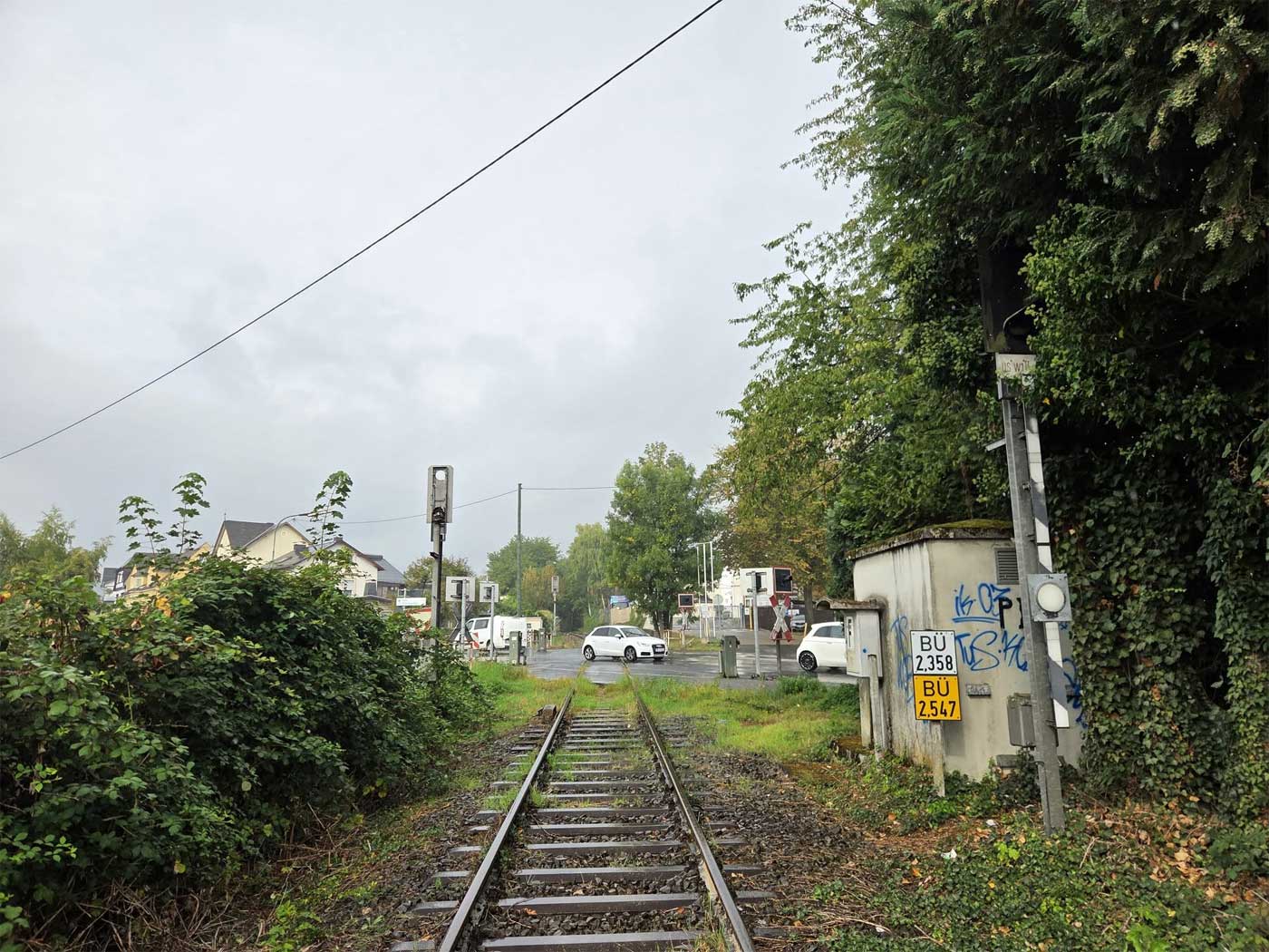 BÜ km 1,938 zwischen Engers und Bendorf-Sayn - Blick Richtung Au (Sieg)