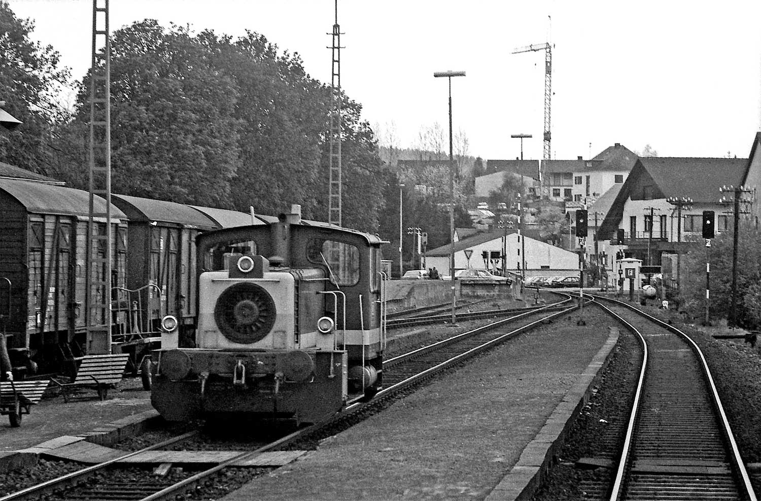 Am 14. Mai 1980 lungerte ich gegen 8.35 Uhr mal wieder mit der Kamera an der Strecke von Altenkirchen nach Siershahn südöstlich des Bahnhofs Seifen an der Brücke über den Holzbach herum.