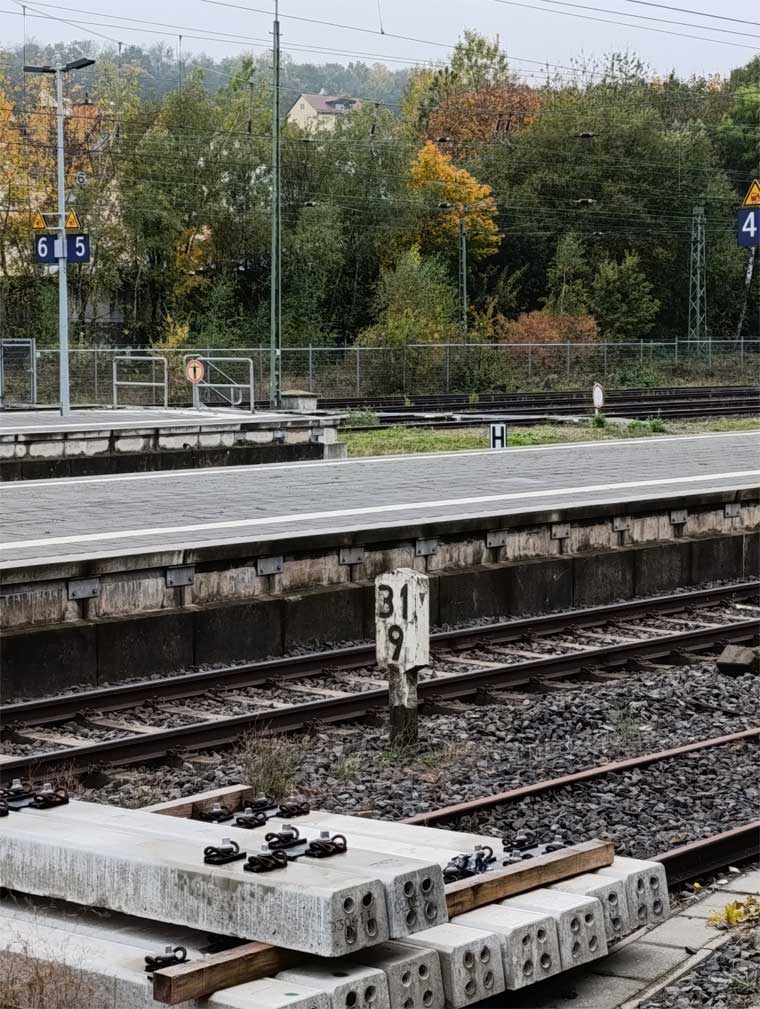 km 1,4 (Tafel und Stein Bildmitte) in Frankfurt (Main) Hbf