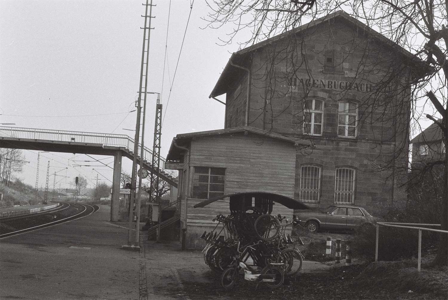km 22,6 (Stein und Tafel) zwischen Hagenbüchach und Emskirchen an dem jetzt stillgelegten Streckenteil
