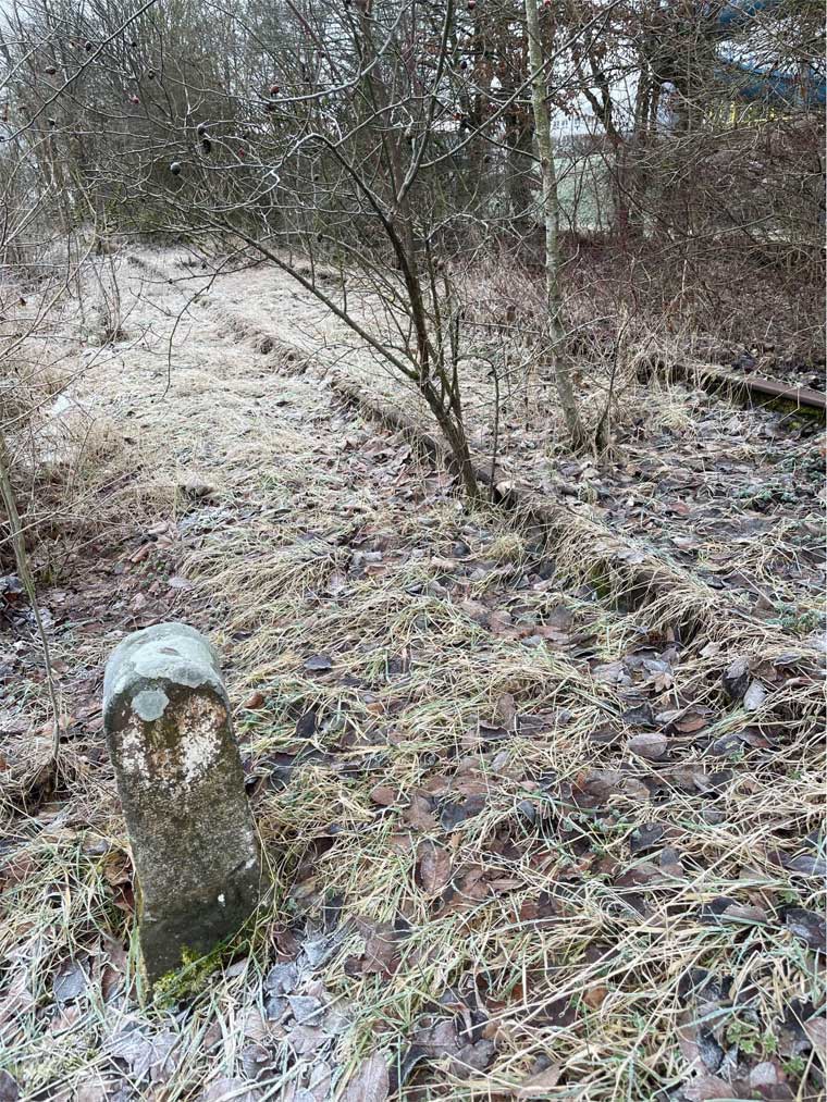 Die Strecke ist schon lange außer Betrieb, der Stein blieb zum Glück erhalten.