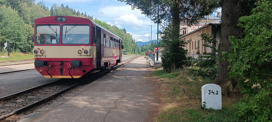 km 34,2 in Kořenov (Grünthal bzw. Polaun, Polubny)