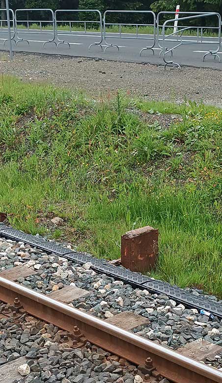 Nowy Świat (Neuwelt) - ehemaliges Abstellgleis mit Prellbock und Abspannmast
