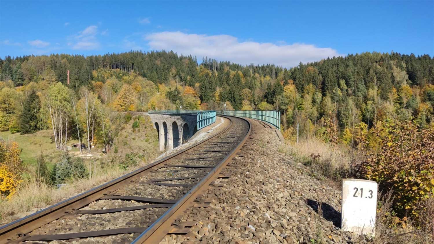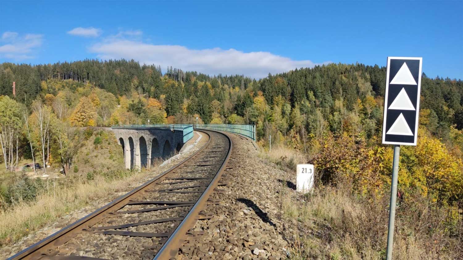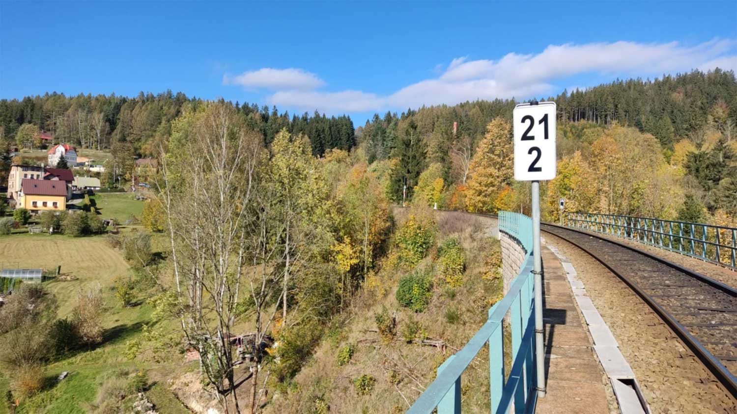 km 145,107 der Strecke Settenz (Řetenice) 0,0 - Lobositz (Lovosice) 36,37 - Böhmisch Leipa (Česká Lípa hl. N.) 84,96 - Deutsch Gabel (Jablonné v Podještědí) 114,557 - Reichenberg (Liberec) 145,107 | ||