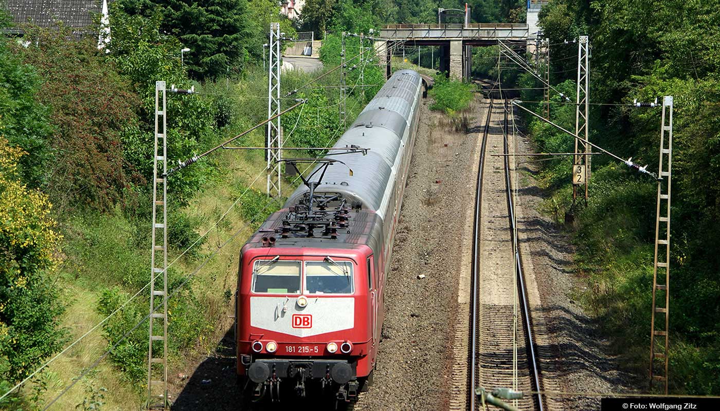 km 7,2 in Winningen (Mosel) - 181 219 mit dem letzten IC Moselabwärts
