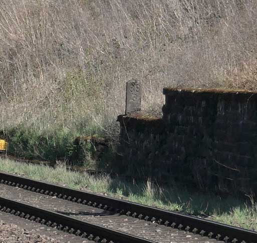 km 76,4 (Tafel) und km 76,5 (Stein) in Wengerohr (heute: Wittlich Hbf) - Blick Richtung Koblenz