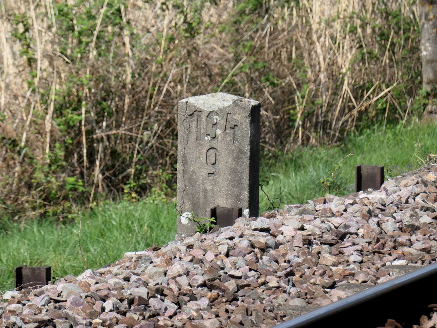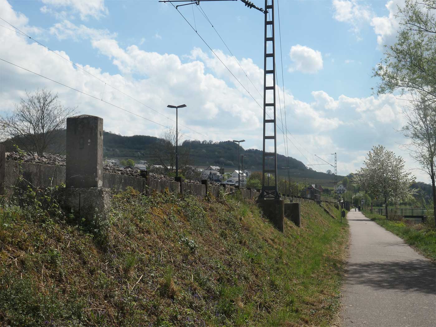 km 123,4 (Stein und Tafel) in Wasserliesch - Blick Richtung Perl