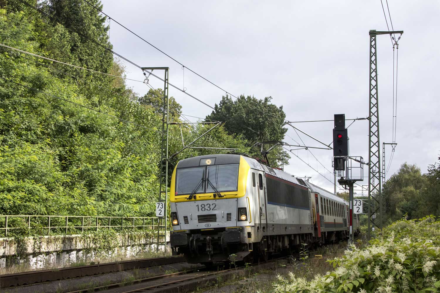 km 60,2 in Stolberg (Rheinl) Hbf - Belgische Viersystemlok mit D 432 (Köln-Aachen-Brüssel-Paris Nord)