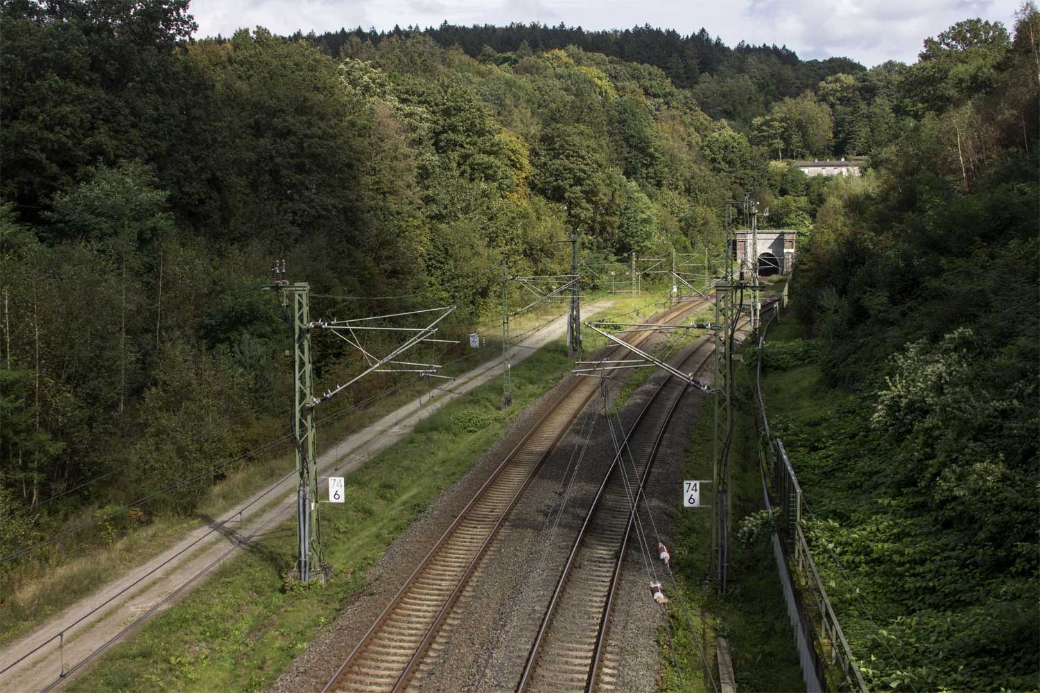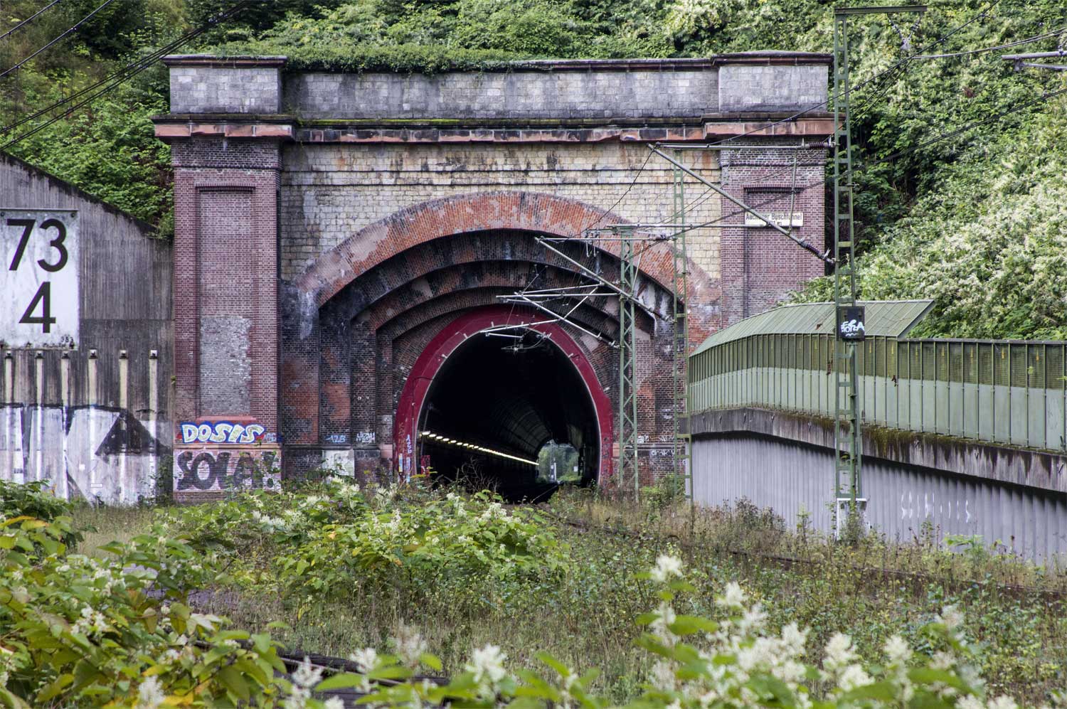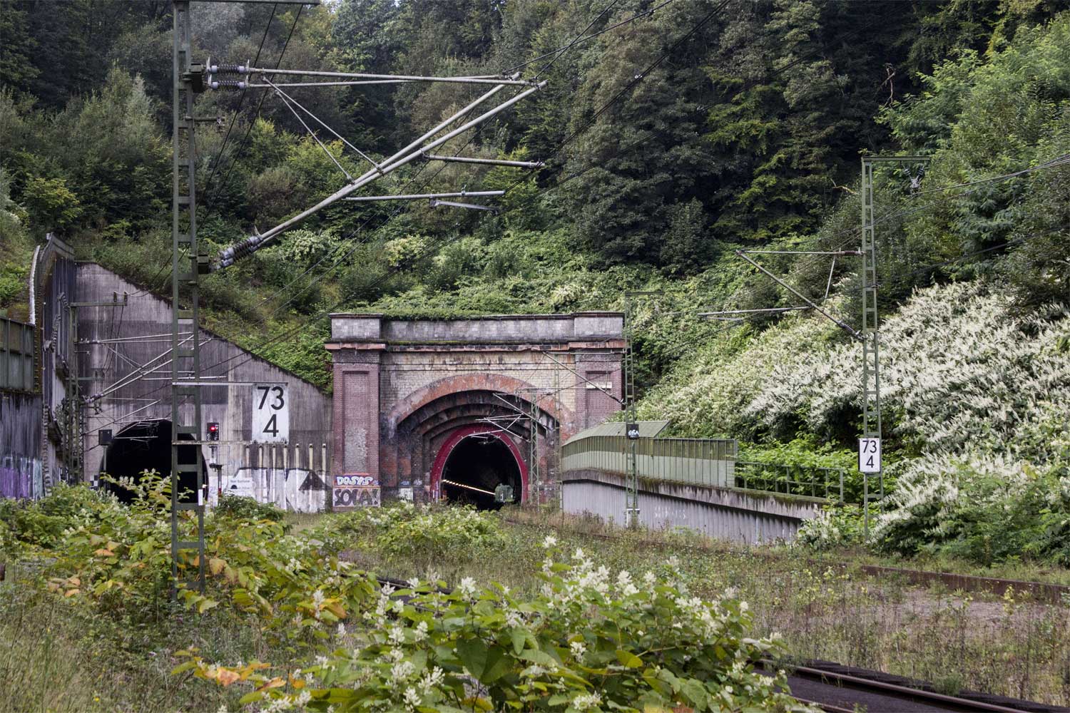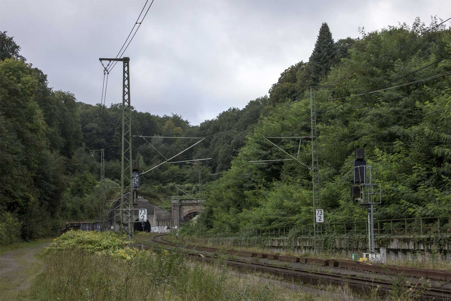 Im Hintergrund die Nordostportale des alten und neuen Buschtunnels