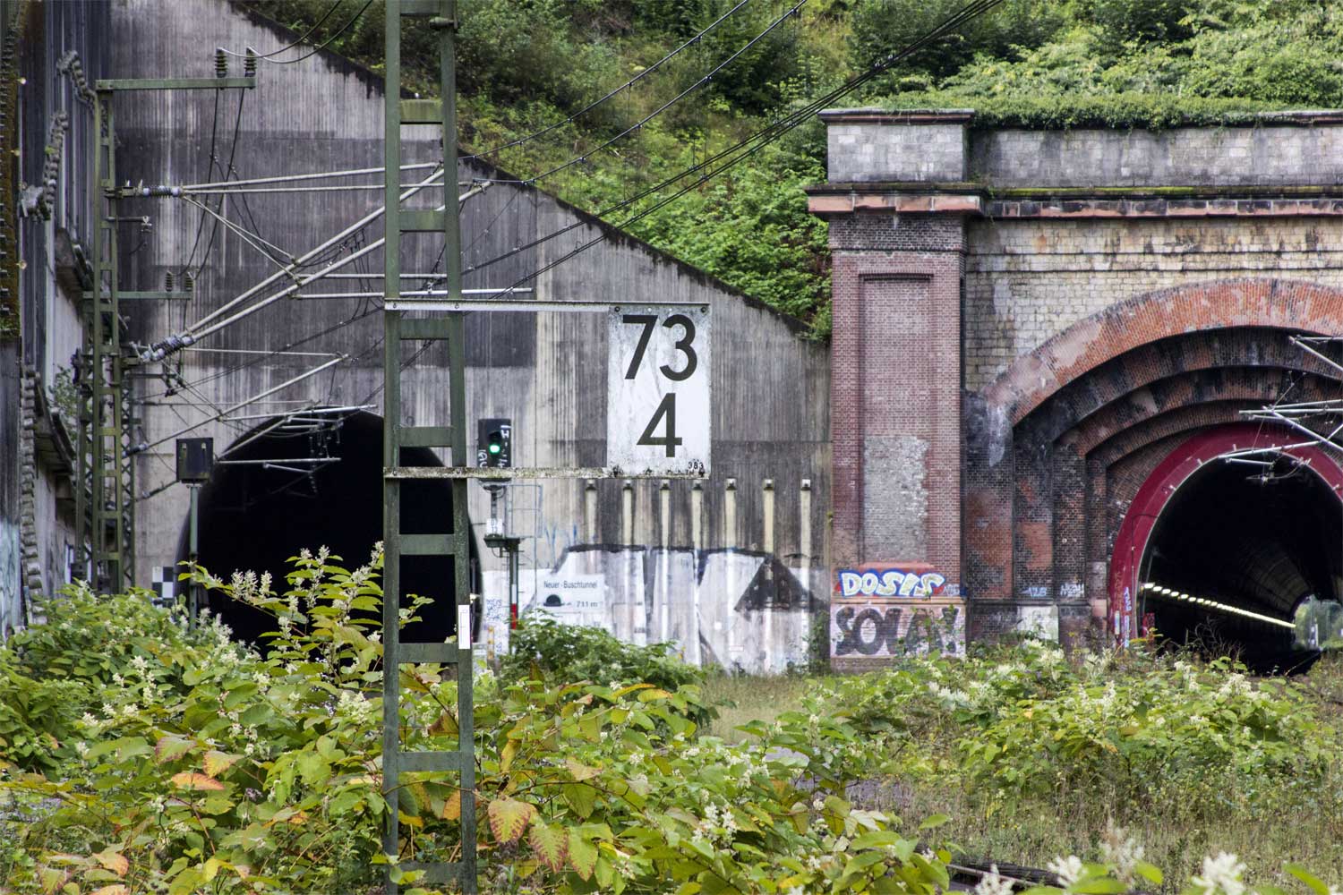 Links der alte Busch-Tunnel mit 691 m; rechts der neue Busch-Tunnel mit 711 m