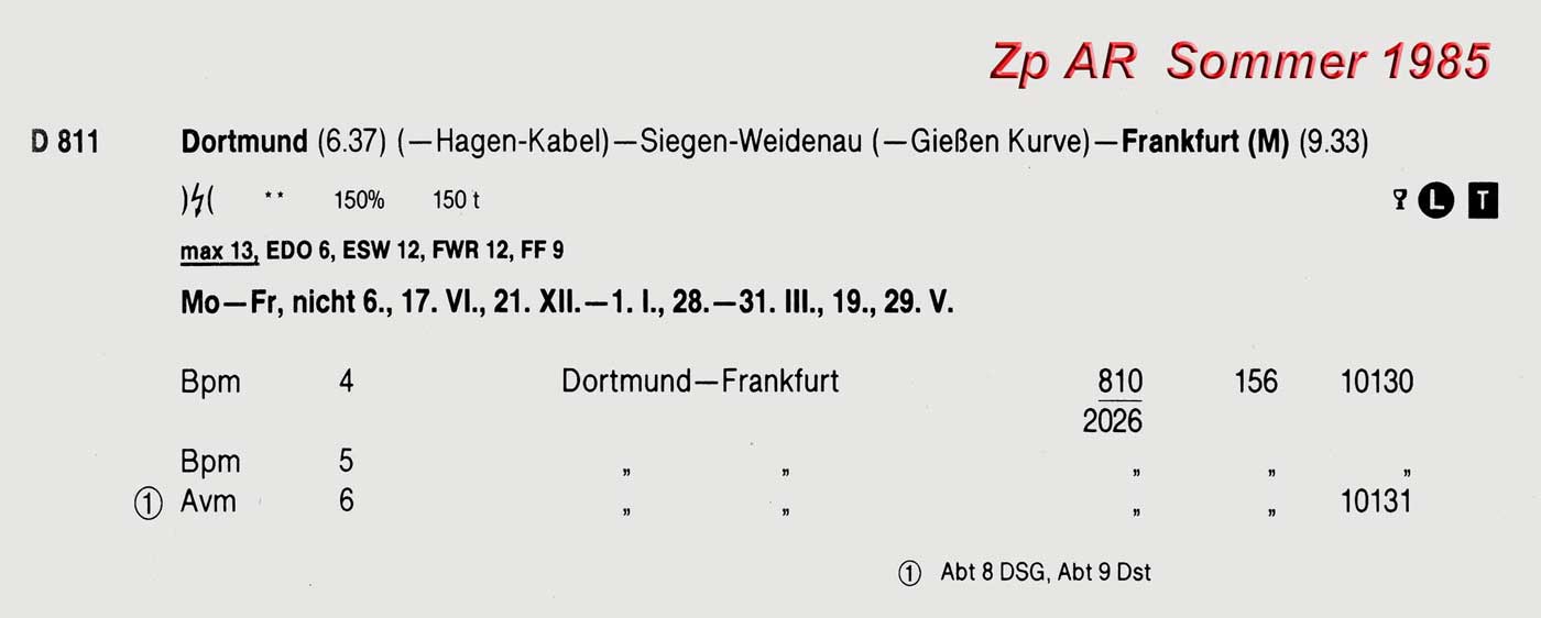 Dieses Mal war der D 811 verstärkt worden: Einer der beiden vorgesehenen Großraumwagen 2. Klasse (Bpmz) wurde durch zwei Schnellzugwagen 2. Klasse (Bm) ersetzt.