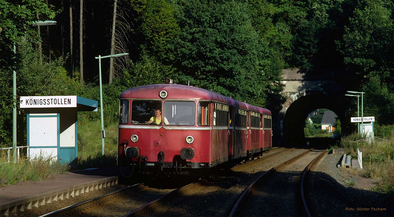 Herdorf | 89,90 | Freien Grunder Eisenbahn AG: Die 8,2 km lange Strecke begann im Bahnhof Herdorf . Sie verlief dann im Landkreis Siegen in östlicher Richtung talaufwärts über Neunkirchen und Salchendorf bis nach Unterwilden, das heute zur Gemeinde Wilnsdorf gehört. Von dort erreichte eine fast 2 km lange Anschlussbahn mit Spitzkehre die Grube Bautenberg. Von Salchendorf führte ferner eine 3,6 km lange Anschlussbahn – ebenfalls mit Spitzkehre – hinauf zur Grube Pfannenberger Einigkeit, wo heute ein Industrieunternehmen steht. Zusätzlich lagen im Kunstertal nördlich Struthüttens Schienen. |