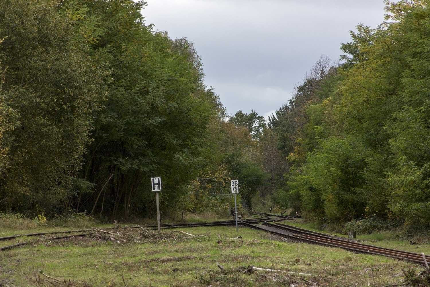 Links ein Anschlußgleis