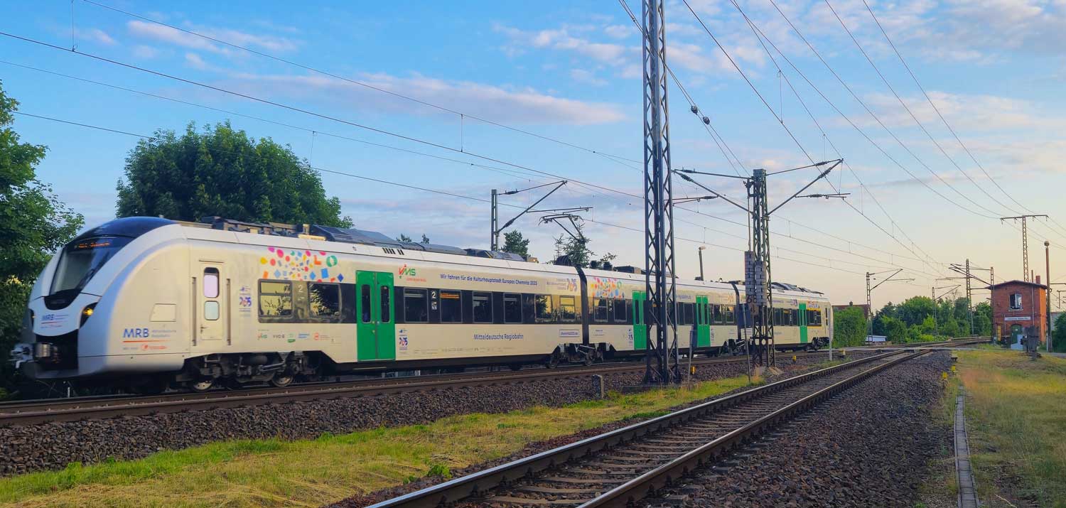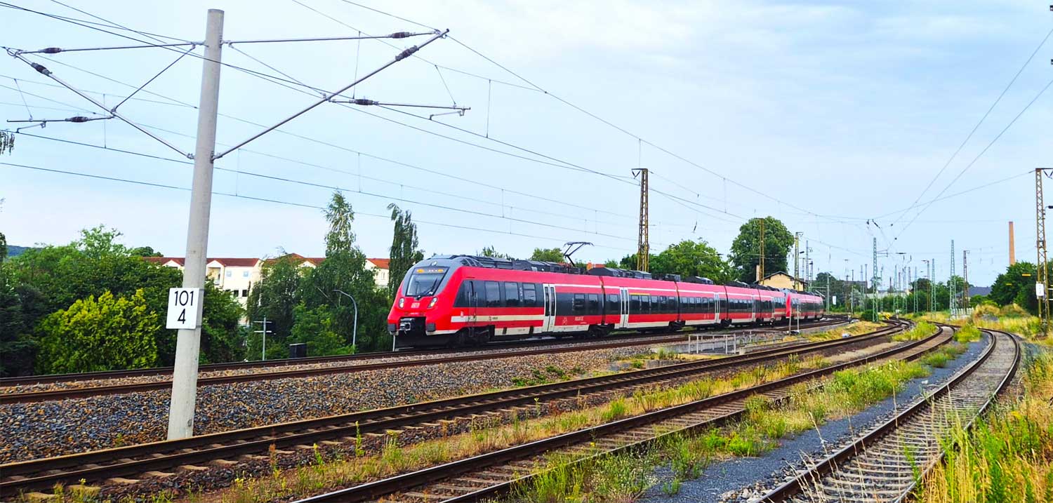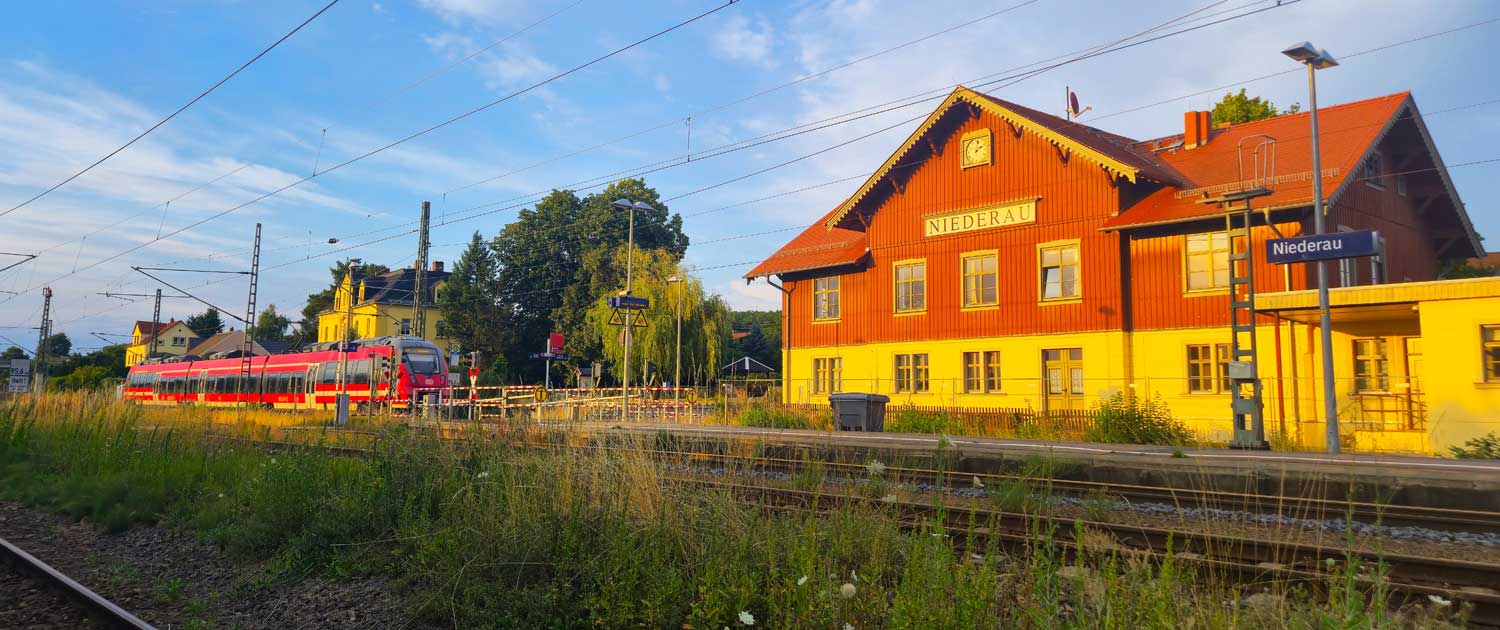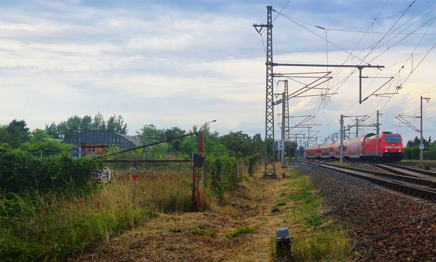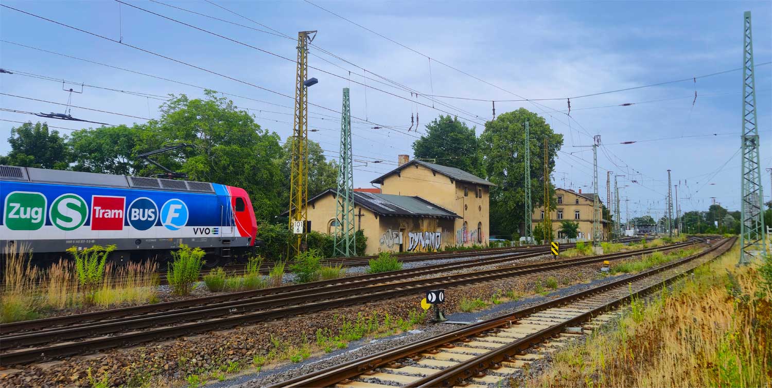 km 109,7 in Radebeul Ost - RE 18 nach Cottbus am Schmalspur-Lokschuppen