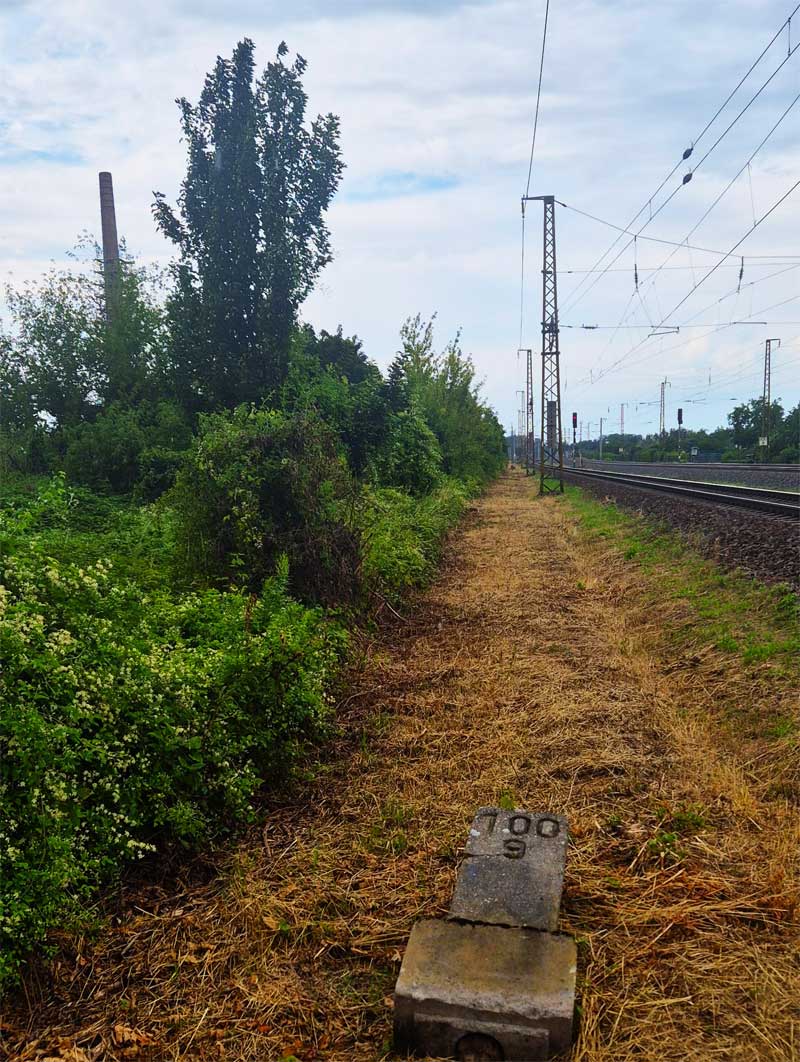 Am westlichen Fußpunkt des Bogens 10 der Bahnhofshalle befindet sich ein besonderer Hektometerstein (Der Standort ist nicht korrekt!):