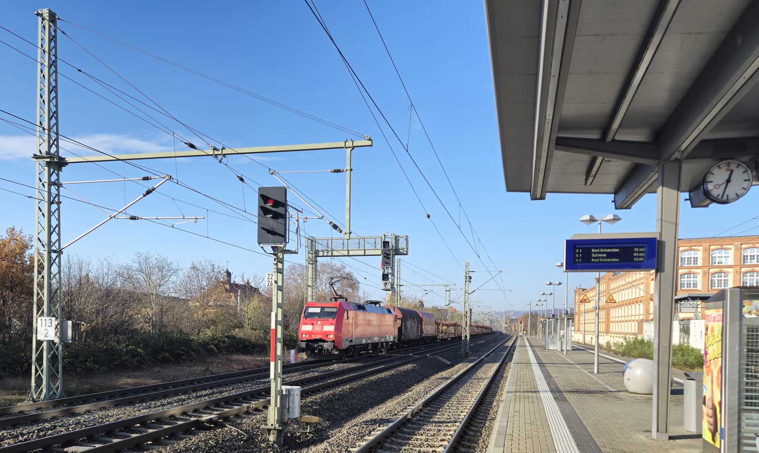 Riesa | 65,87 | km -0,14 der Strecke Riesa -0,135 - Döbeln Hbf 25,37 - Chemnitz Hbf 65,89 (RC) |