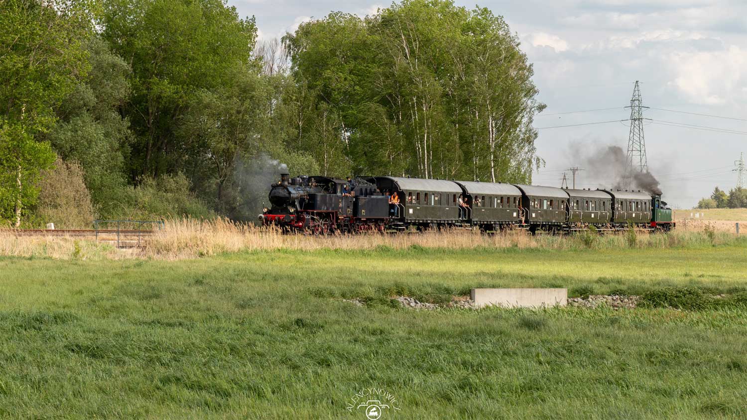km 55,8 zwischen Tuchorza [Tannheim (Warthel)] und Belęcin Wielkopolski - Zug fährt Richtung Wolsztyn [Wollstein (Pos)]