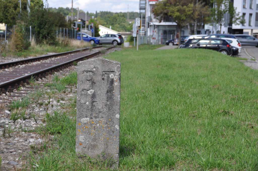Schwackenreute | 27,65 | km 0,0 der Strecke Schwackenreute 0,0 - Pfullendorf 16,04 - km 16,720 = km 24,350 (Grenze zwischen der Staatsbahn von Württemberg und der Staatsbahn von Baden, später BD-Grenze Stuttgart/Karlsruhe - Keine Landesgrenze!) - Burgweiler 17,72 - Altshausen 0,0 (seit 1974 BD-Grenze bei km 17,570 = km 23,500) |