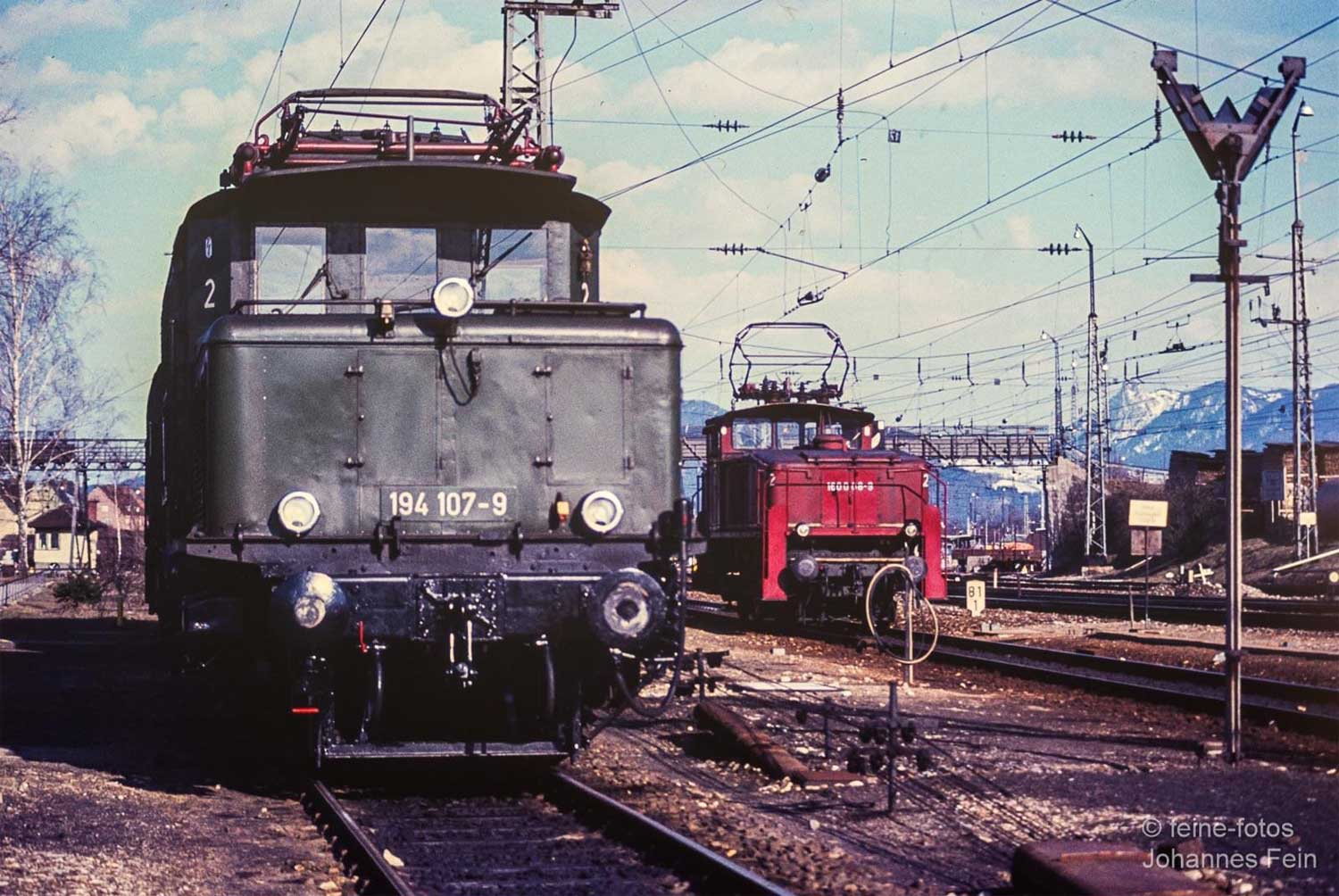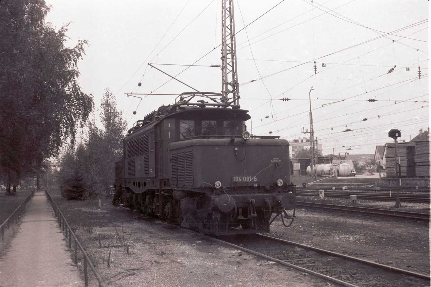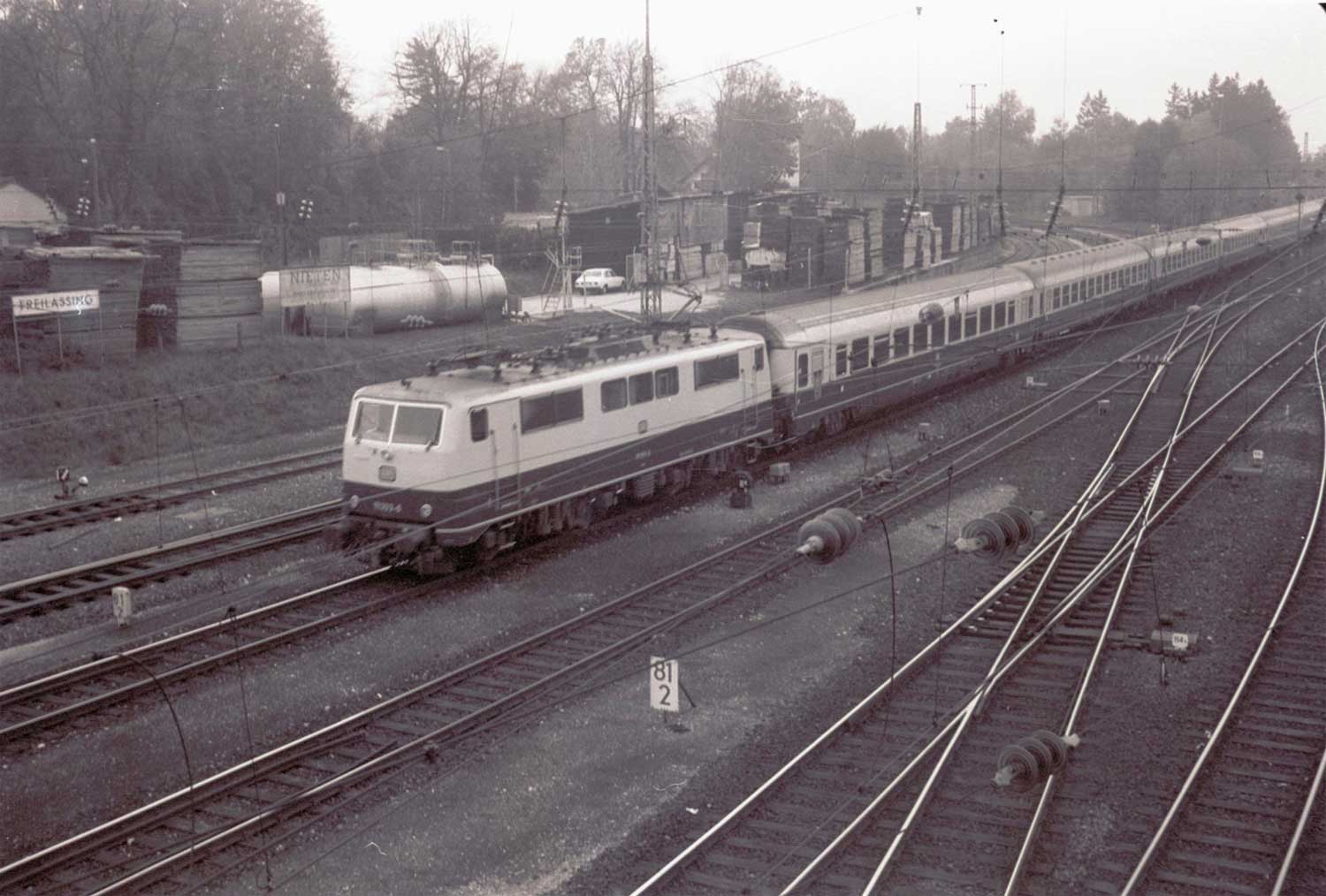 km 80,9 in Freilassing - 194 041 vom Bw Freilassing fährt an ihrem Zuhause vorbei (um 1980)