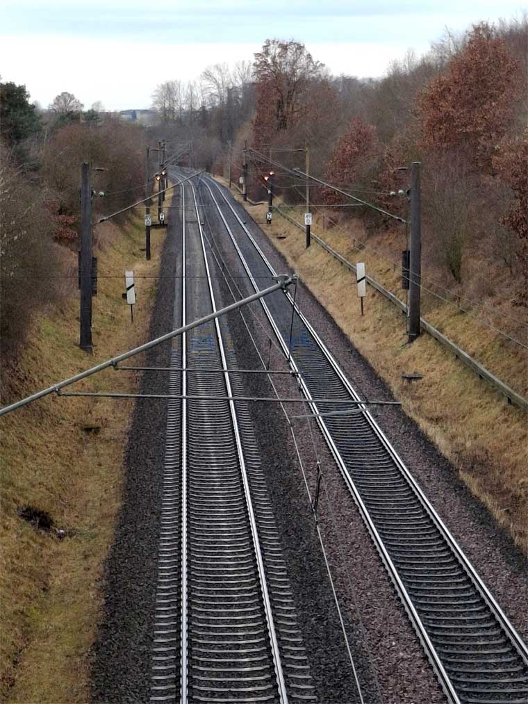Rechts km 2,4 (Gegenrichtungs- und Richtungsgleis) der Strecke