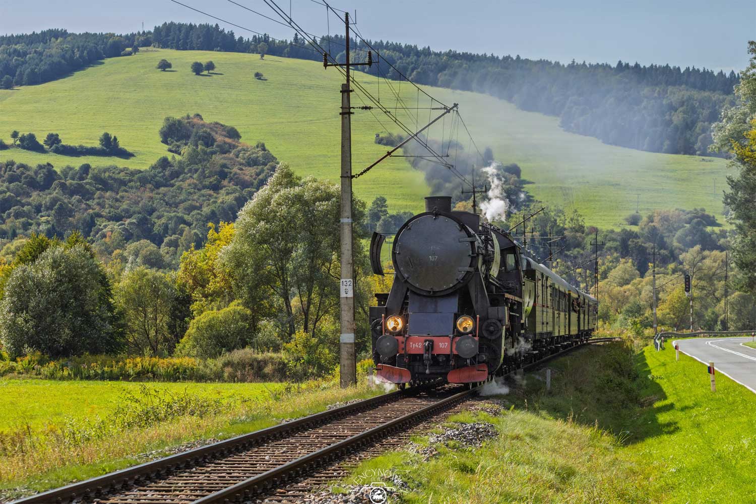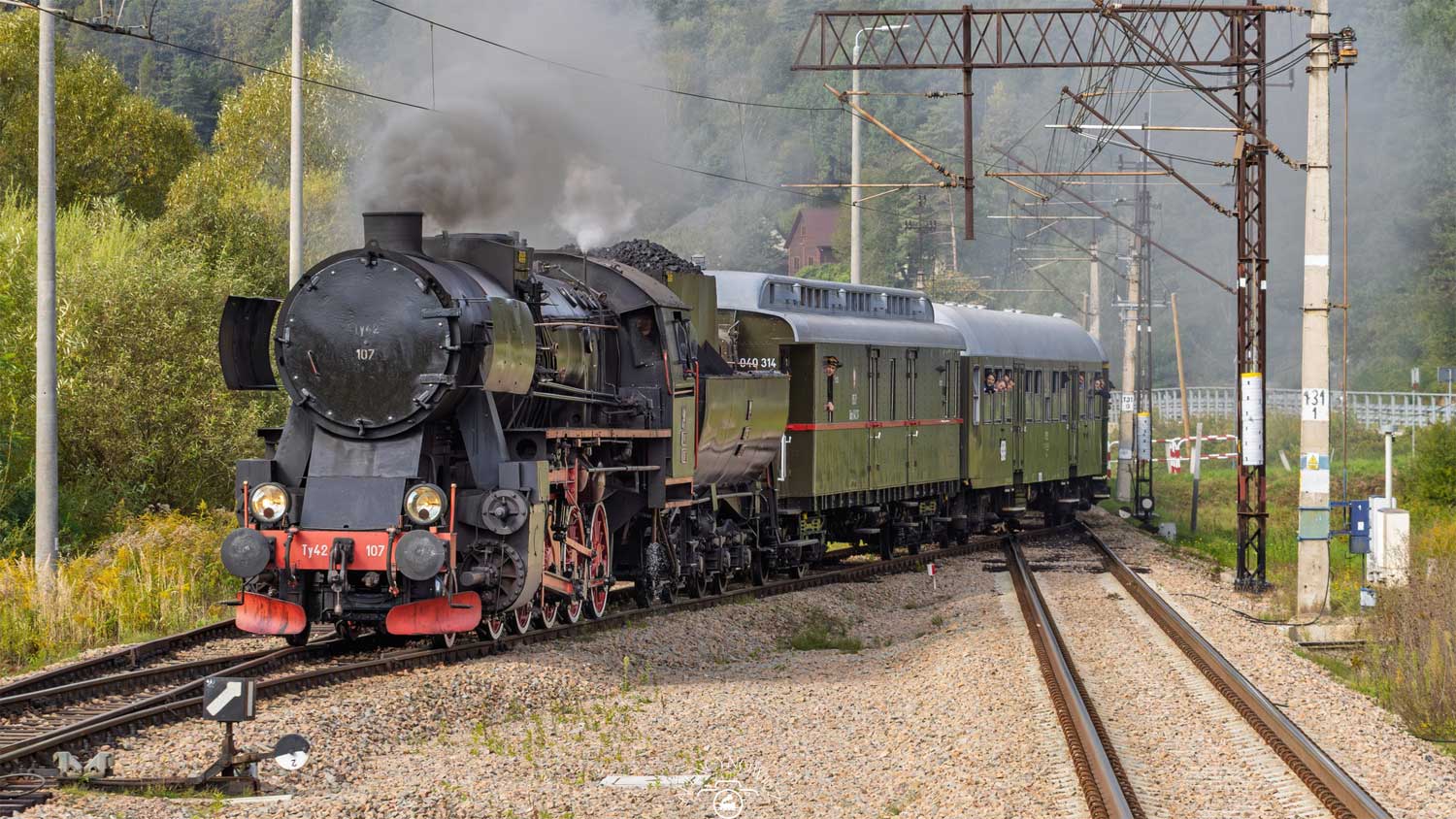 km 73,0 zwischen Ptaszkowa und Mszalnica Ty42-107 Foto: Marcin Alek, 29.09.2024