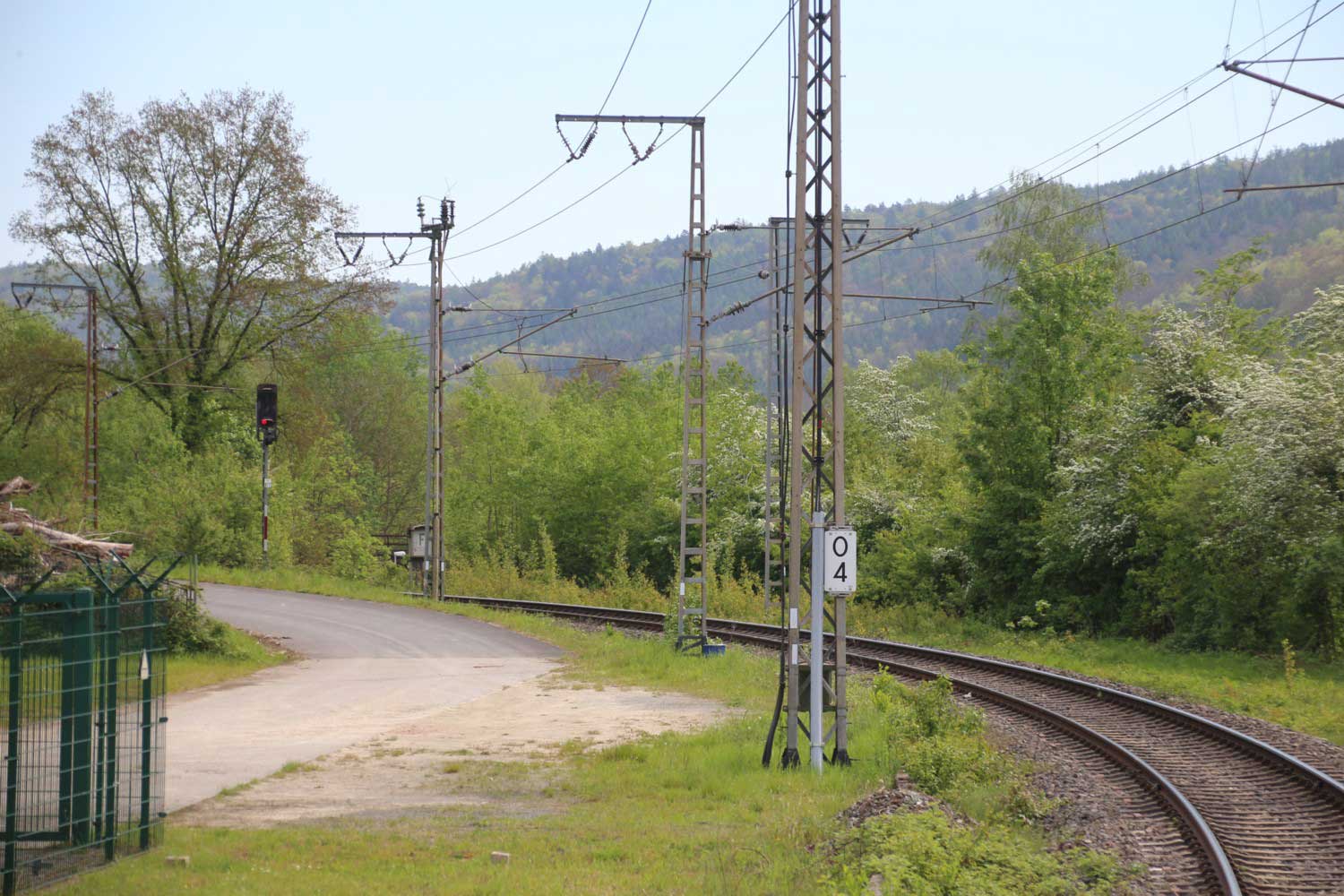 bei km 0,1 am Abzw Gemünden Zollberg - Blick Richtung Streckenanfang
