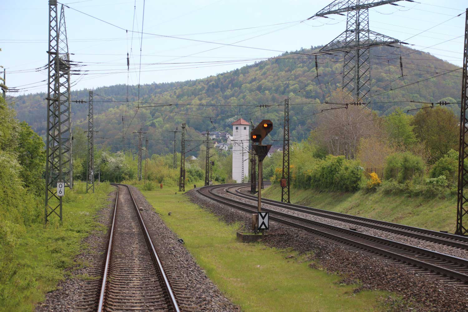 bei km 0,9 zwischen Abzw Gemünden Zollberg und Langenprozelten - Blick Richtung Langenprozelten