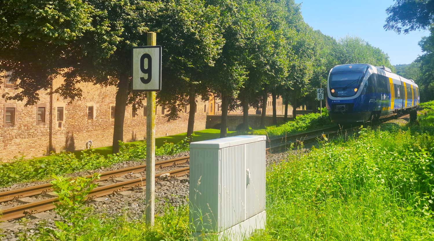 Rechts km 331,6 der Strecke (Aachen Hbf 1,87) - Scherfede 283,44 (Abzw von Strecke 12) - Holzminden 332,63 (über Düsseldorf)