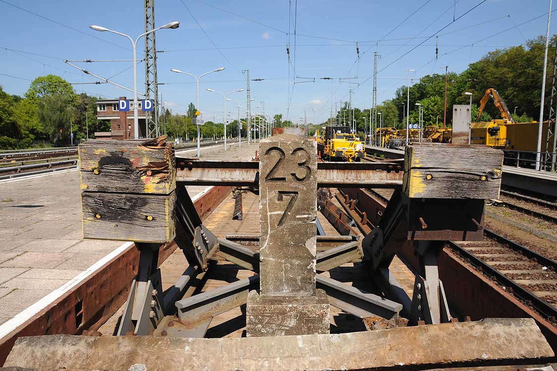 Pbf. Die Kilometrierung wurde bis nach Potsdam weitergeführt. Ebenso entstanden abzweigende Strecken mit weiterlaufender Kilometrieung. Die Kilometrierung umfasst die S-Bahngleise und die Fernbahngleise. |