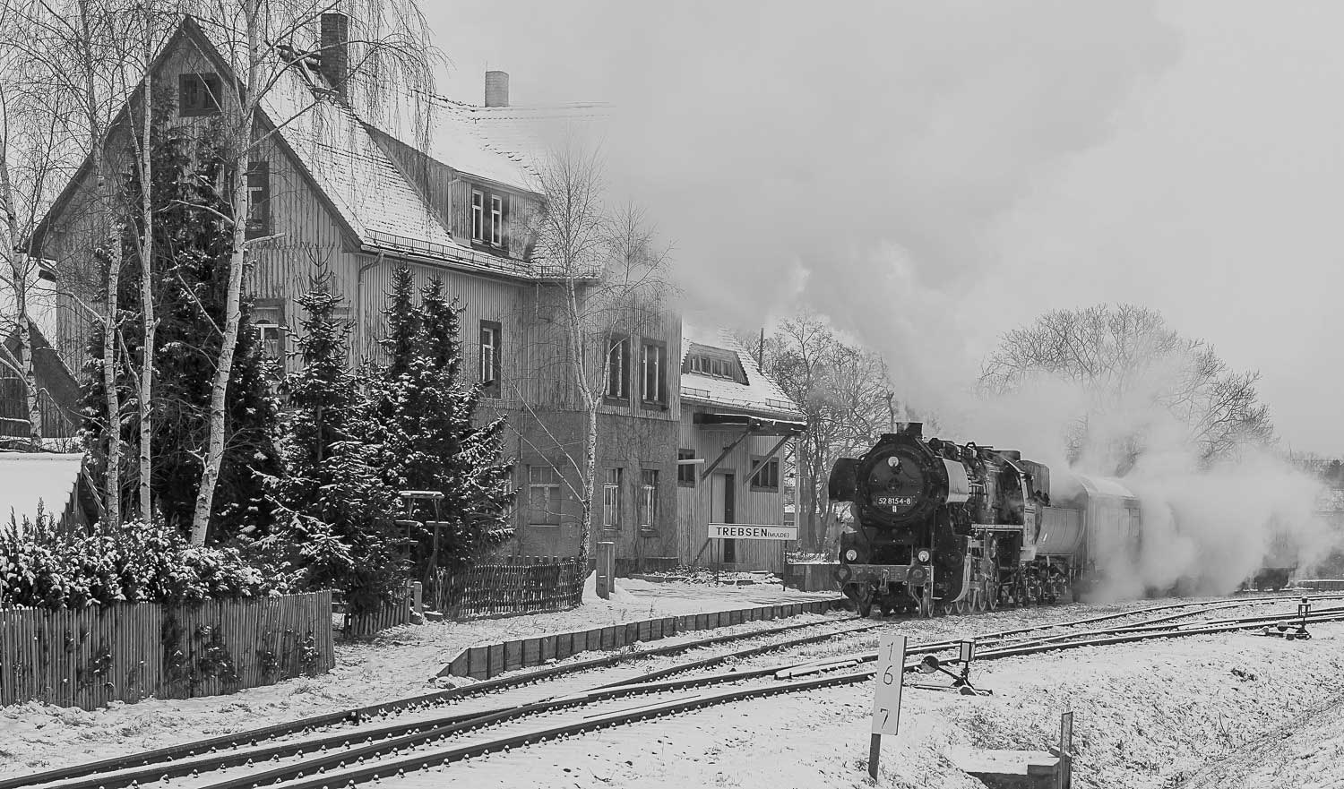 km 16,7 in Trebsen (Mulde) - 52 8154 mit Sonderzug