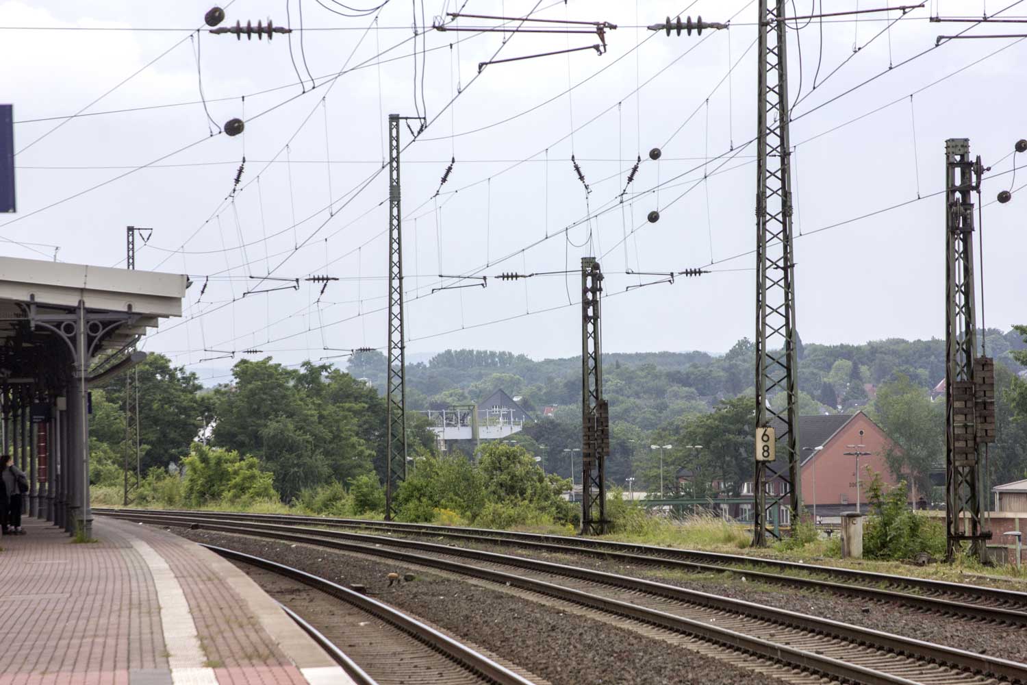 km 57,48 der Strecke Krefeld-Oppum 0,0 - Duisburg-Hochfeld Süd 14,05 (kommend)/13,83 (gehend) - Mülheim-Eppinghofen 23,50 - Essen Nord 34,11 - Bochum-Langendreer 57,48 - Dortmund Süd 69,42 | ||