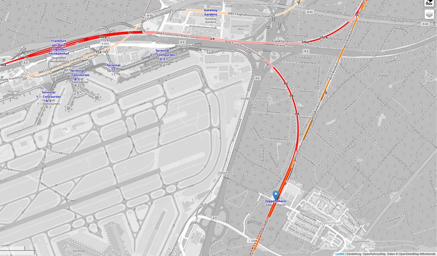 Frankfurt (Main) Flughafen Fernbahnhof, W 15/16, km 0,0 - Zeppelinheim, W 405, km 5,352 (3656)