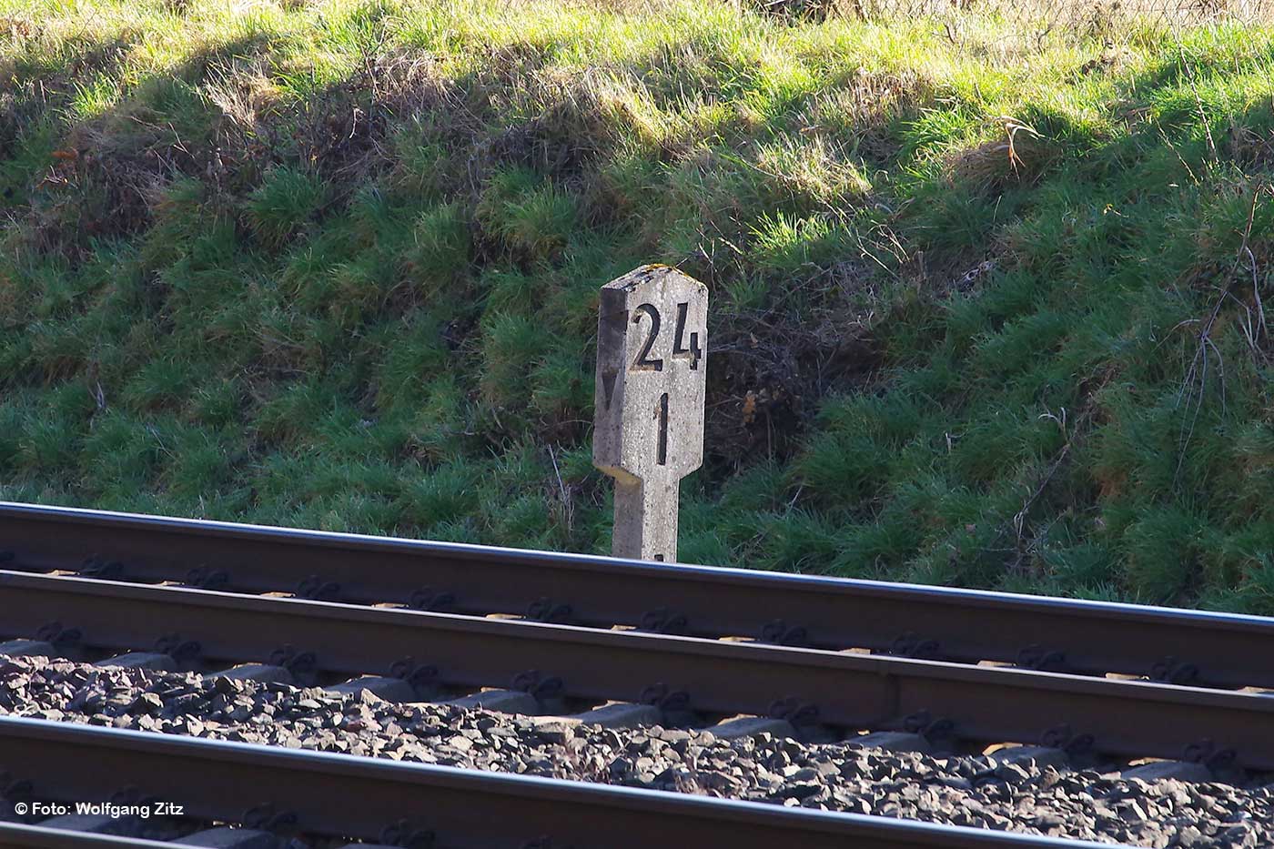 km 76,7 (Tafel rechts) gehört zur Strecke