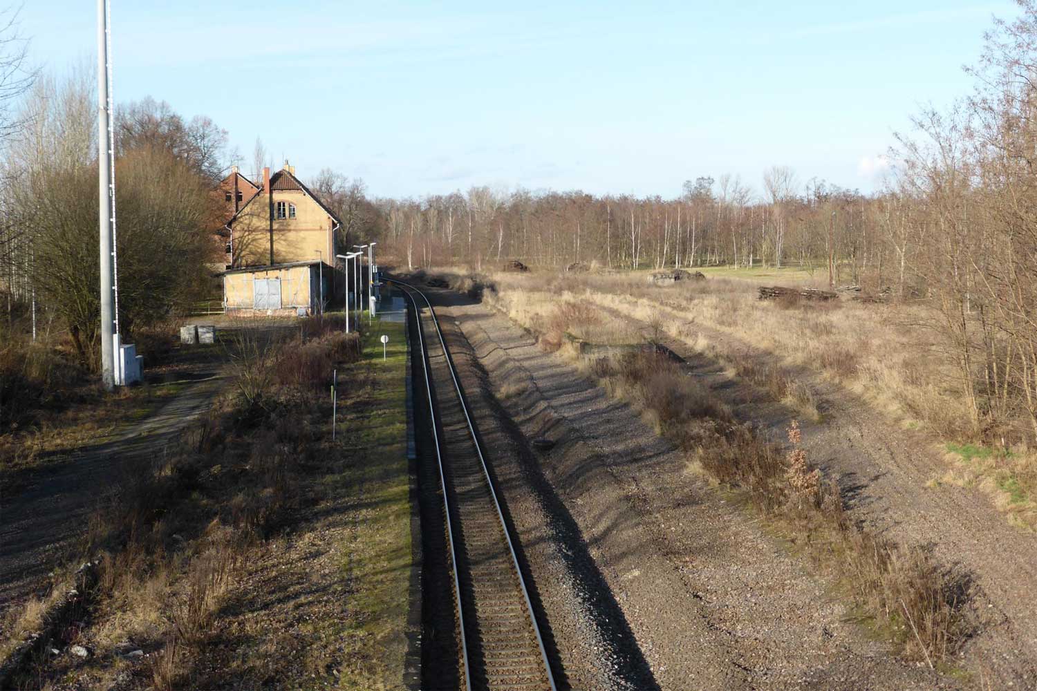 Gut zu erkennen auch die Bahnsteigkante am ehemaligen Hp Schortleben.