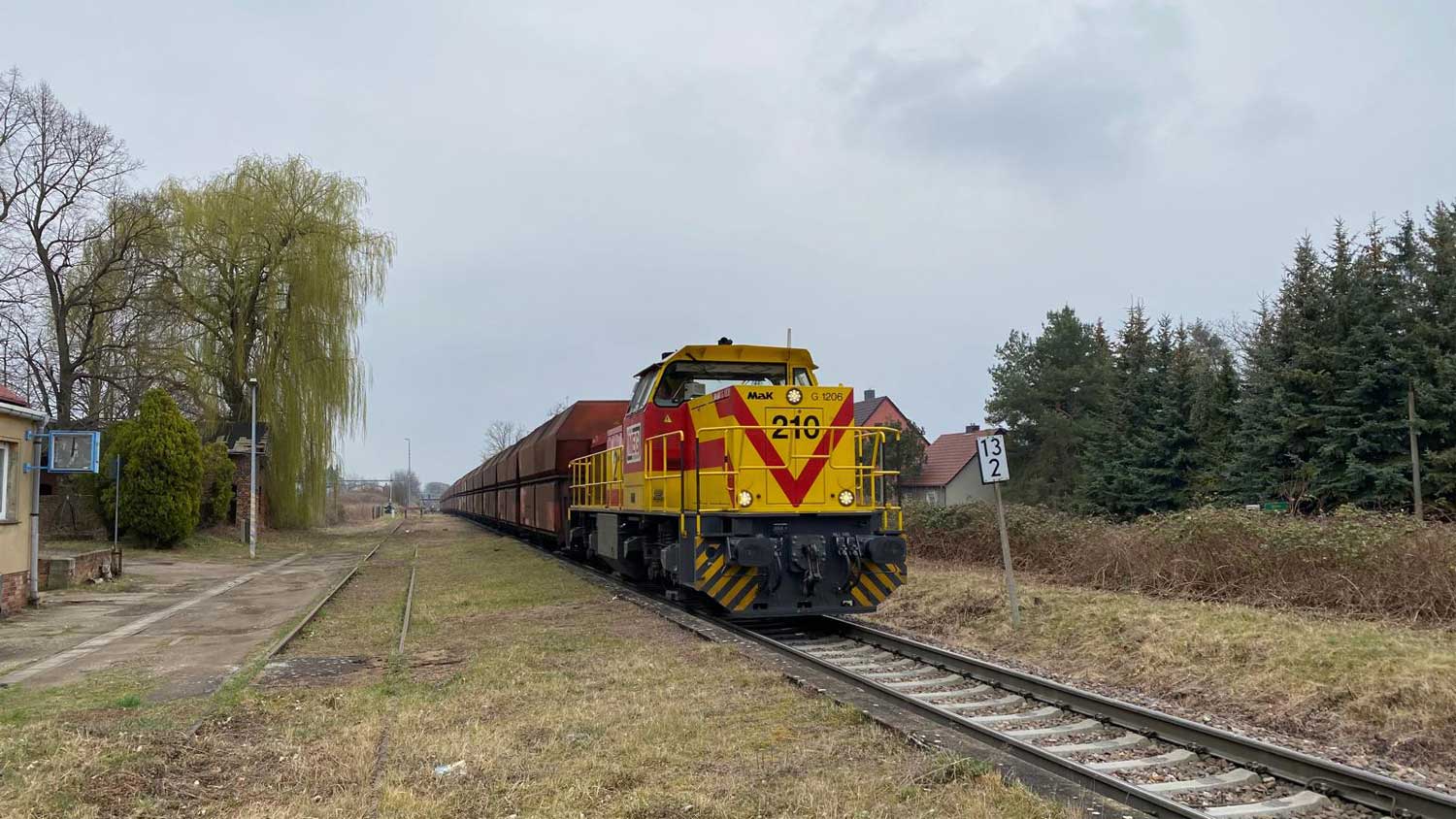 km 2,3 zwischen Großkorbetha und Schkortleben - MEG 213 mit Braunkohlenzug