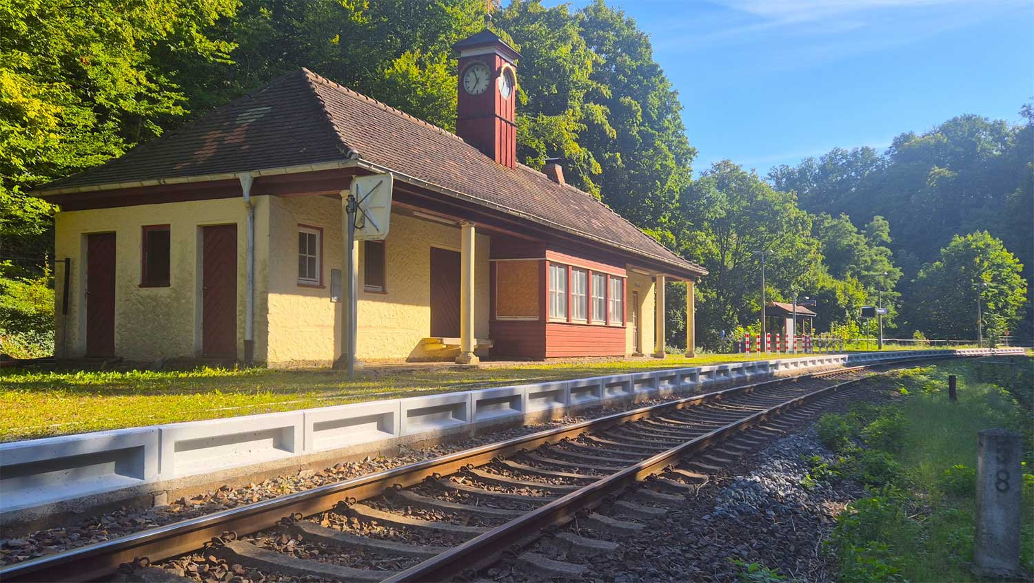 Im Hintergrund das Südportal des Gleisberg-Tunnels
