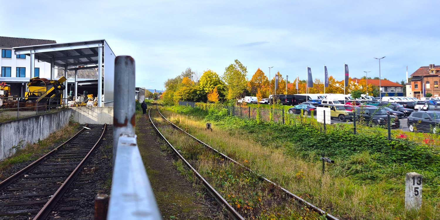 Links die ehemalige Strecke Kassel-Bettenhausen Kleinbf 0,0 - Wellerode Wald 10,6 (Söhrebahn) - heute Anschlussgleis