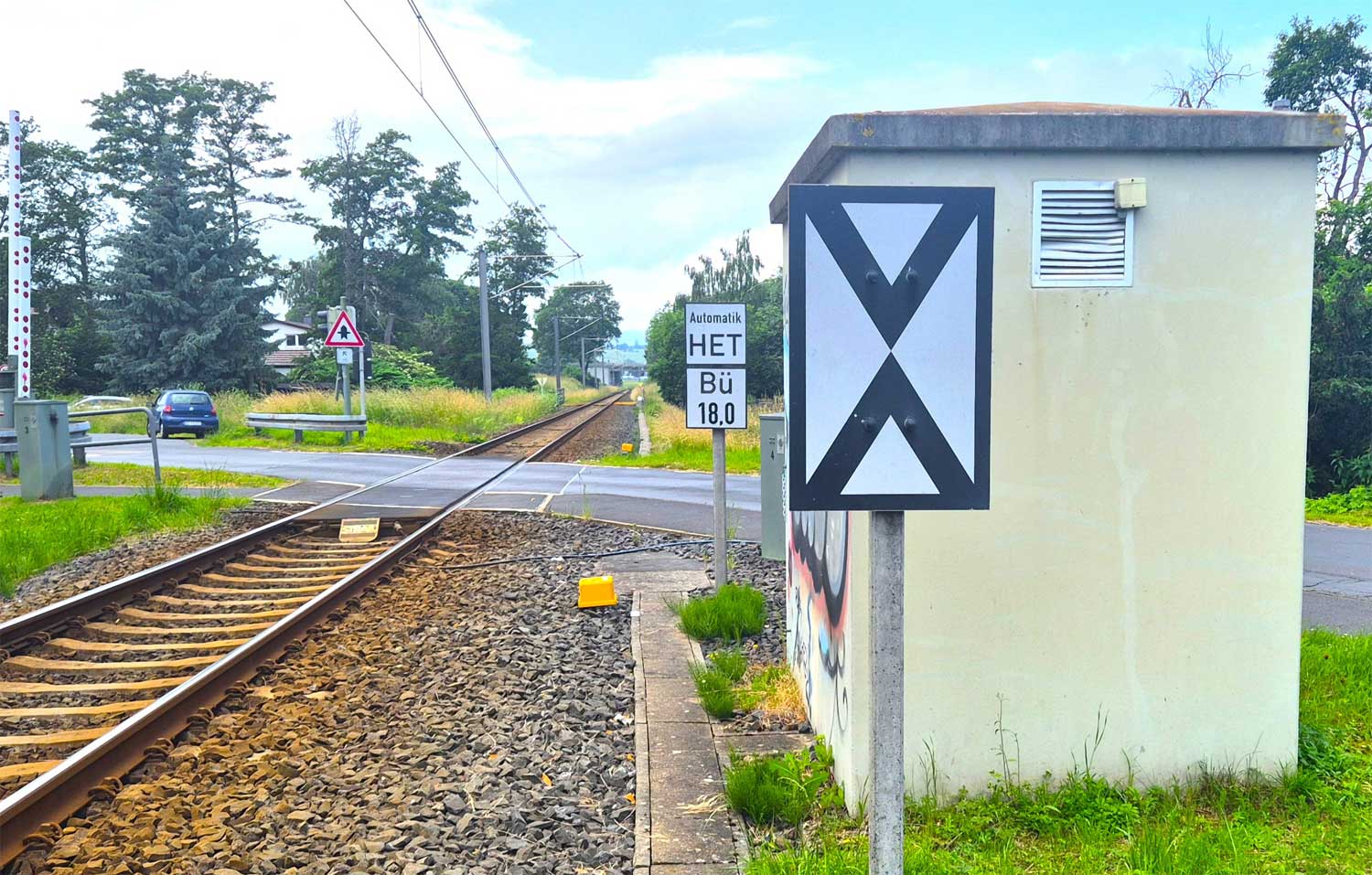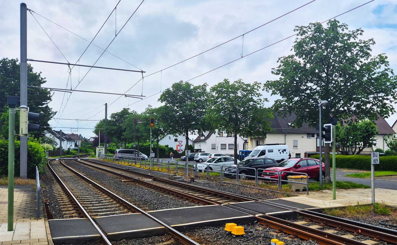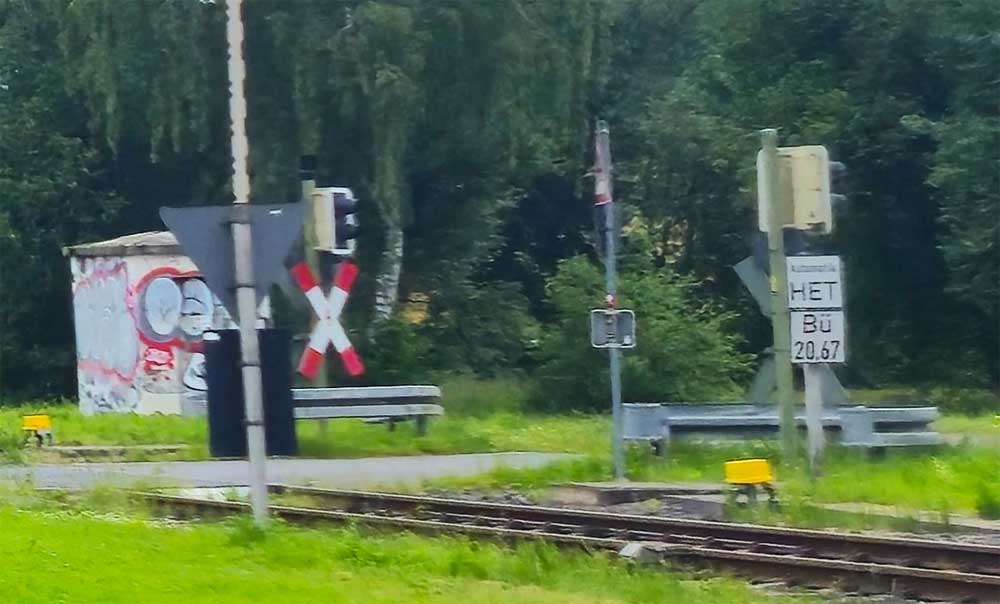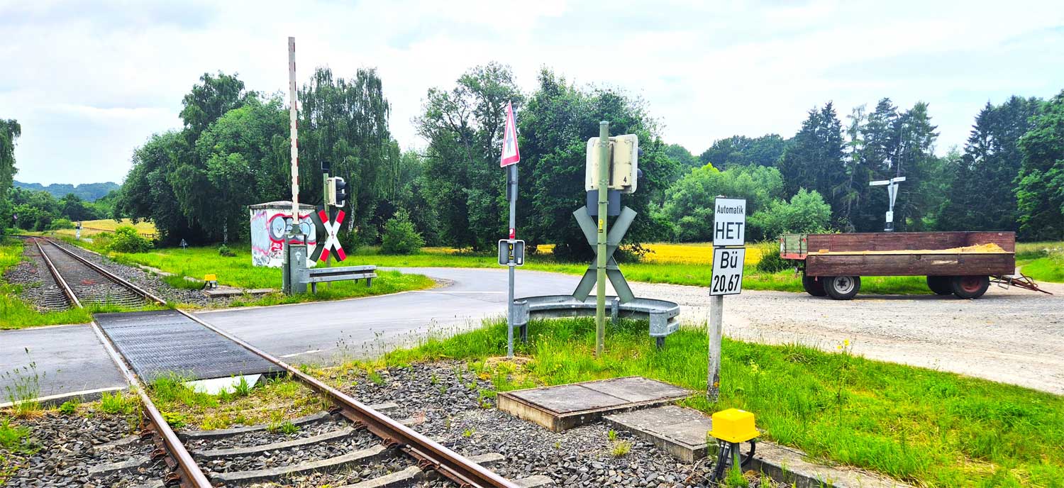 Im Hintergrund der BÜ km 18,92