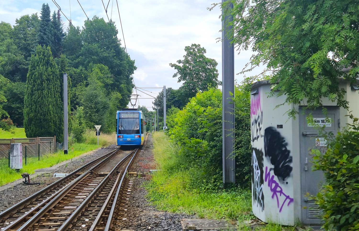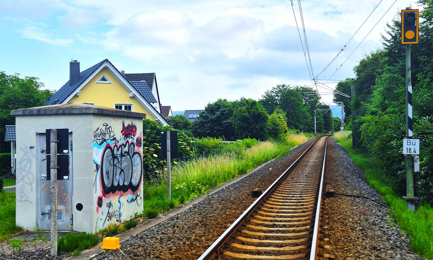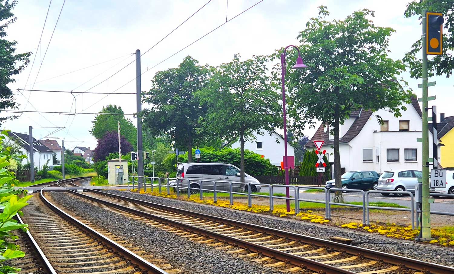 Im Hintergrund der BÜ km 18,92