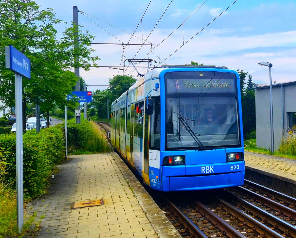 Rechts die Einmündung der Straßenbahn mit der Haltestelle Rieckswiesen